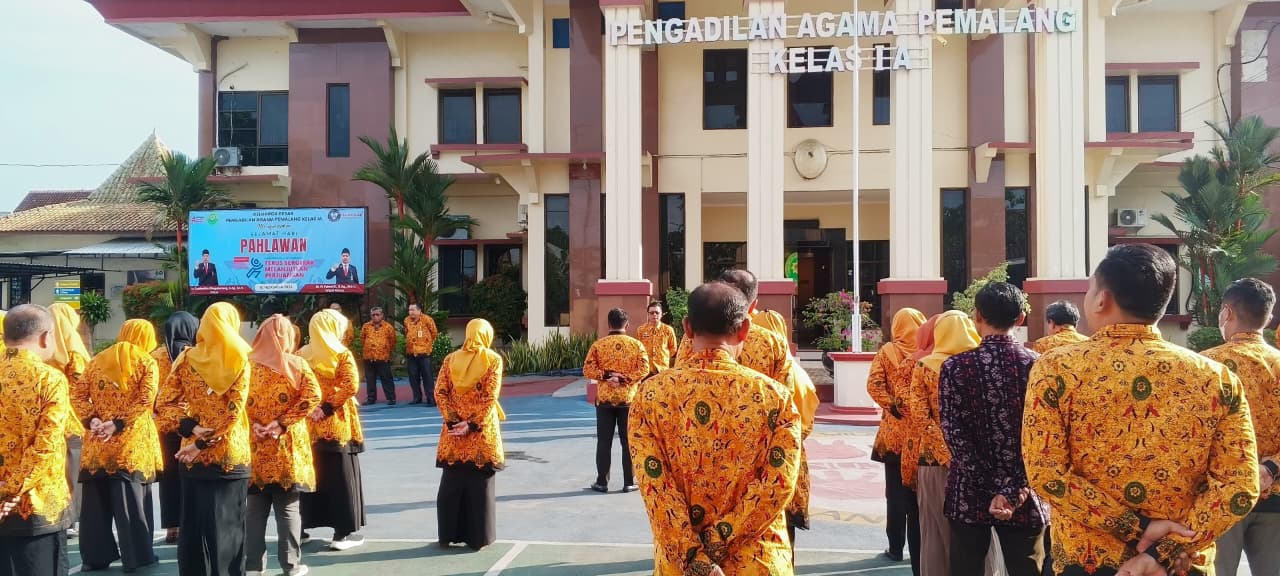 Jumat 05 Desember 2025 Aparatur Pengadilan Agama Pemalang melaksanakan Apel Jumat Sore bertempat di Halaman Depan Kantor Pengadilan Agama Pemalang. Sebagai Pembina Apel Wakil Ketua Pengadilan Agama Pemalang Dr. H. Fahmi R, S.Ag, M.H.I. Dalam amanatnya beliau menyampaikan untuk selalu menjaga kerukunan dan kekeluargaan di Pengadilan Agama Pemalang. Tidak lupa selalu menjaga integritas dan di siplin dalam bekerja.