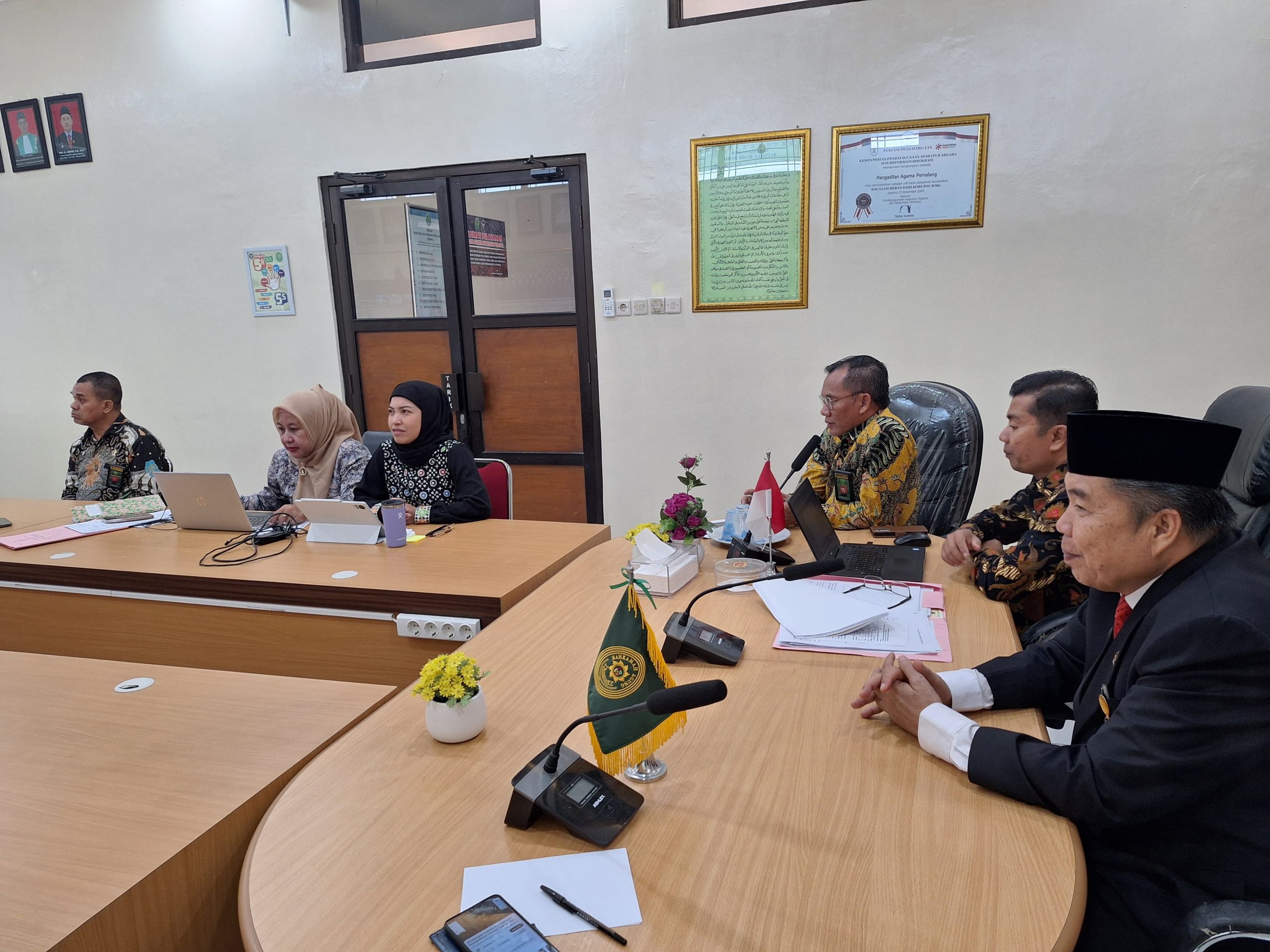 Bertempat di Media Center Pengadilan Agama Pemalang, Seluruh Tenaga Teknis Pengadilan Agama Pemalang Mengikuti Bimtek Peningkatan Kompetensi Tenaga Teknis Di lingkungan Peradilan Agama Secara Daring dengan Tema “Perlindungan Hak Asasi Manusia dalam Penyelesaian Hukum Keluarga” dengan Narasumber YM Hakim Agung Kamar Agama MARI Dr. Edi Riadi,S.H., M.H. pukul 08.00 WIB.