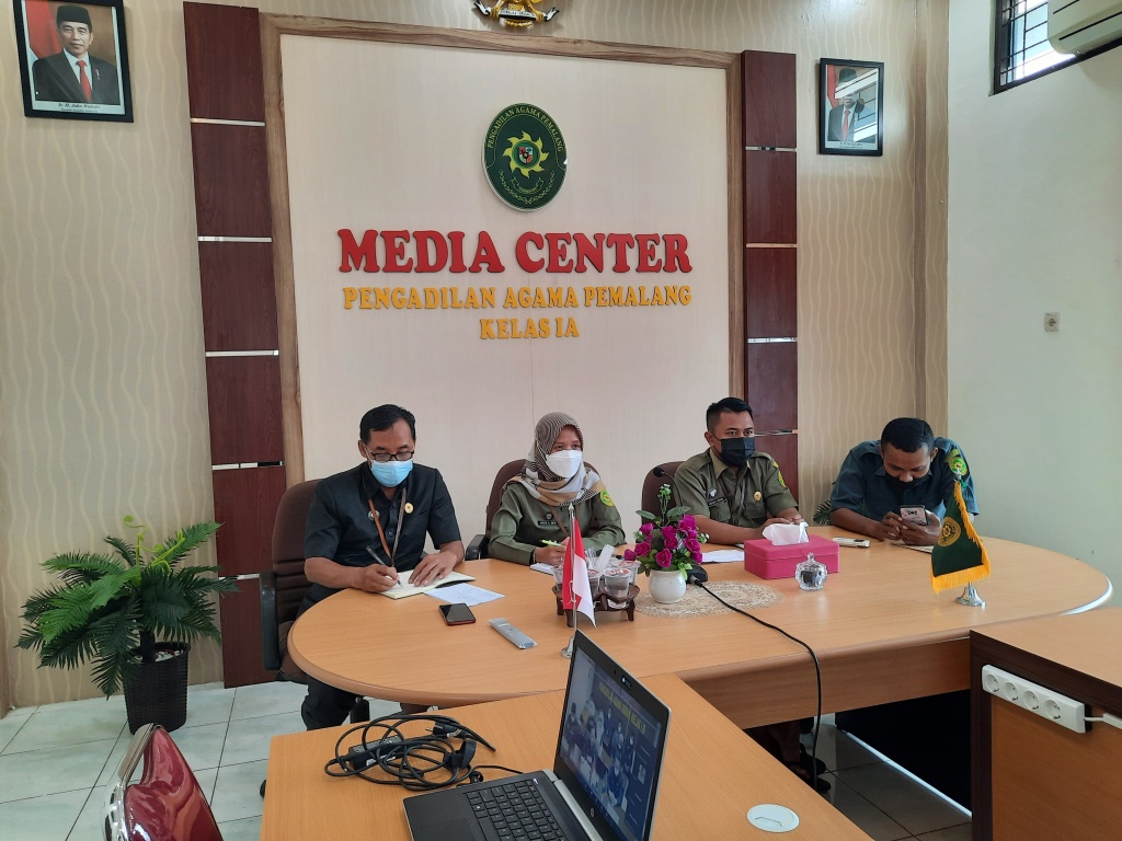 Pemalang, 08 September 2021. Bertempat di Ruang Media Center Pengadilan Agama Pemalang, siang ini pukul 13.30 WIB perwakilan PPNPN Pengadilan Agama Pemalang Nicke Astriana Dewi, Irsadul Anwar, dan Likhit Ari Prabowo yang di dampingi oleh Kasubag Kepegawaian, Organisasi dan Tata Laksana Bapak Slamet, S.Ag., M.H. mengikuti acara bincang virtual tenaga PPNPN Peradilan Agama Se-Jawa Tengah. Acara ini diselenggarakan dalam rangka untuk mempererat silaturahmi tenaga PPNPN se-wilayah Peradilan Agama se-Jawa Tengah yang tergabung dalam Ikatan Pegawai Honorer Mahkamah Agung Republik Indonesia Jawa Tengah (IKAPH). (yip)