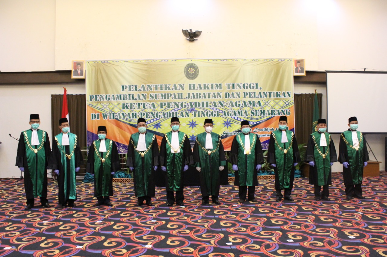 Dr. H. Bahruddin Muhammad, SH.M.H., Ketua Pengadilan Tinggi Agama Semarang pada hari Rabu 12 Agustus 2020 telah melantik 2 (dua) orang Hakim Tinggi, mengambil sumpah jabatan 18 orang Ketua Pengadilan Agama serta menyaksikan serah terima jabatan 16 orang Ketua Pengadilan Agama. Bertempat di Hotel Grasia, Gajah Mungkur, Semarang, upacara berjalan dengan khidmat serta memenuhi syarat protokol kesehatann pencegahan Covid-19.