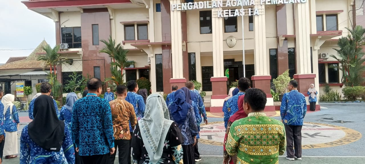 Aparatur Pengadilan Agama Pemalang melaksanakan Apel Jumat sore pada tanggal 12 Desember 2025 bertempat di Halaman depan Kantor Pengadilan Agama Pemalang. Sebagai Pembina Apel Hakim Pengadilan Agama Pemalang Drs. M. Sakdulloh dalam amanat Beliau menyampaikan selalu menjunjung tinggi integritas dan tetap disiplin dalam bekerja.