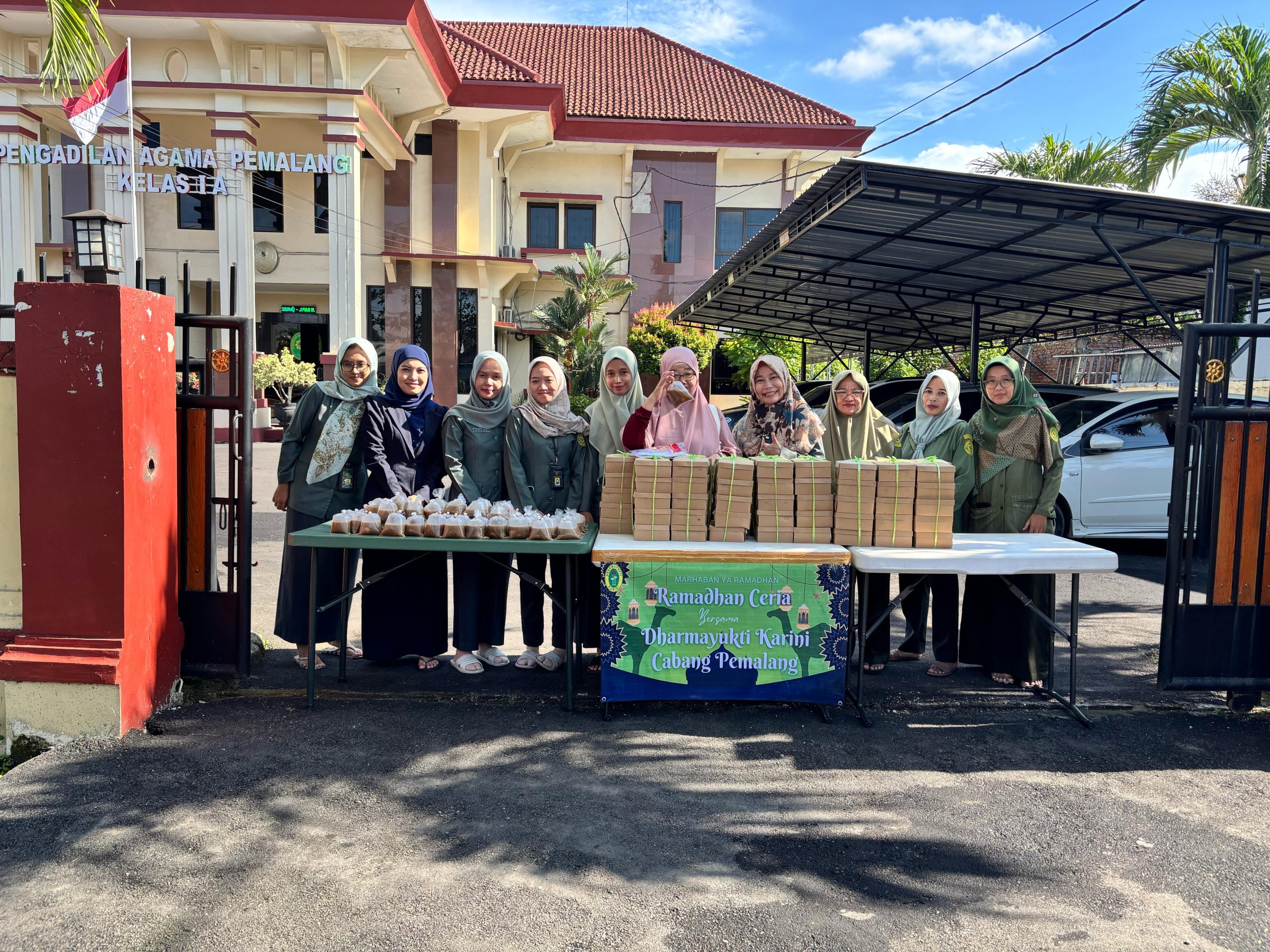 Kegiatan Pembagian Takjil Bersama Dharmayukti Karini Cabang Pemalang dalam rangka Bulan Suci Ramadhan 1446 H. Pembagian diberikan kepada masyarakat yang melintas di area depan Kantor Pengadilan Agama Pemalang Kelas IA.