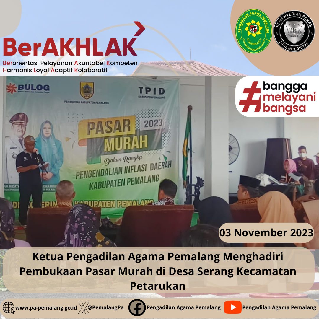 Home / Berita Internal / Ketua Pengadilan Agama Pemalang Menghadiri Pembukaan Pasar Murah di Desa Serang Kecamatan Petarukan