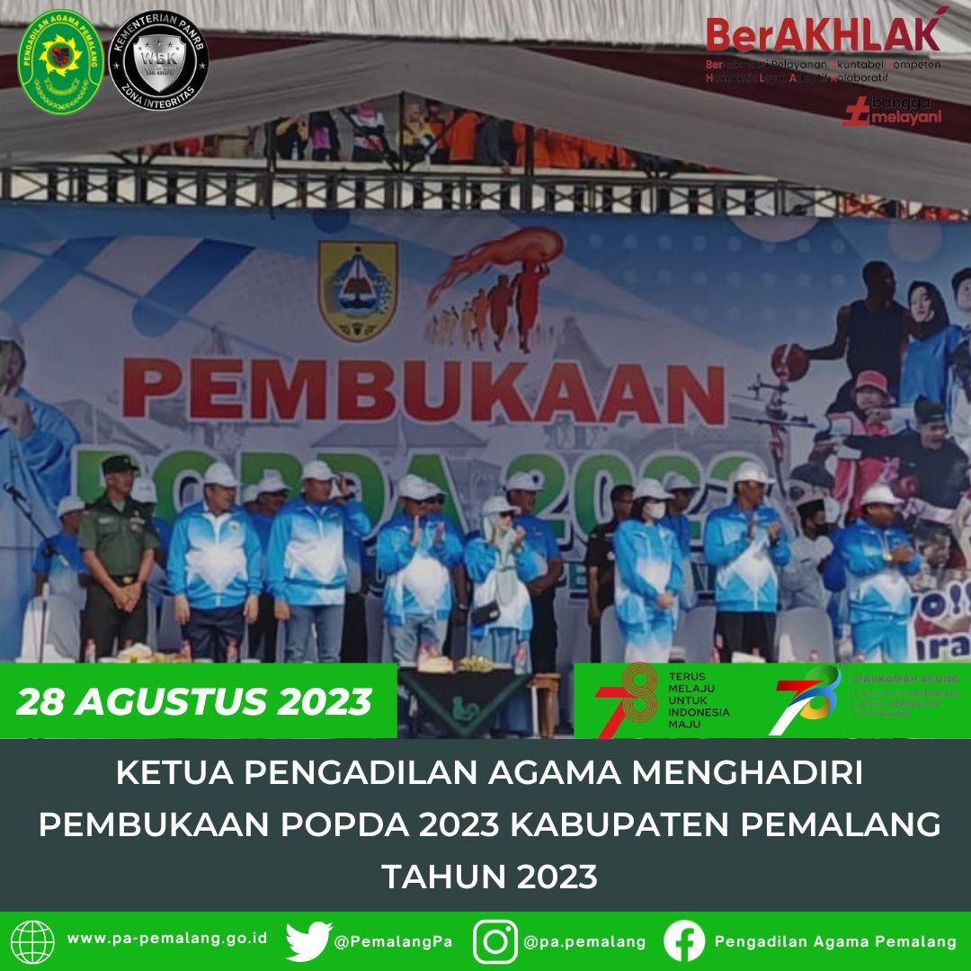 Ketua Pengadilan Agama Pemalang, Solahuddin Sibagabariang, S.Ag., M.H Menghadiri acara Pembukaan POPDA Kabupaten Pemalang Tahun 2023 di Stadion Mochtar.