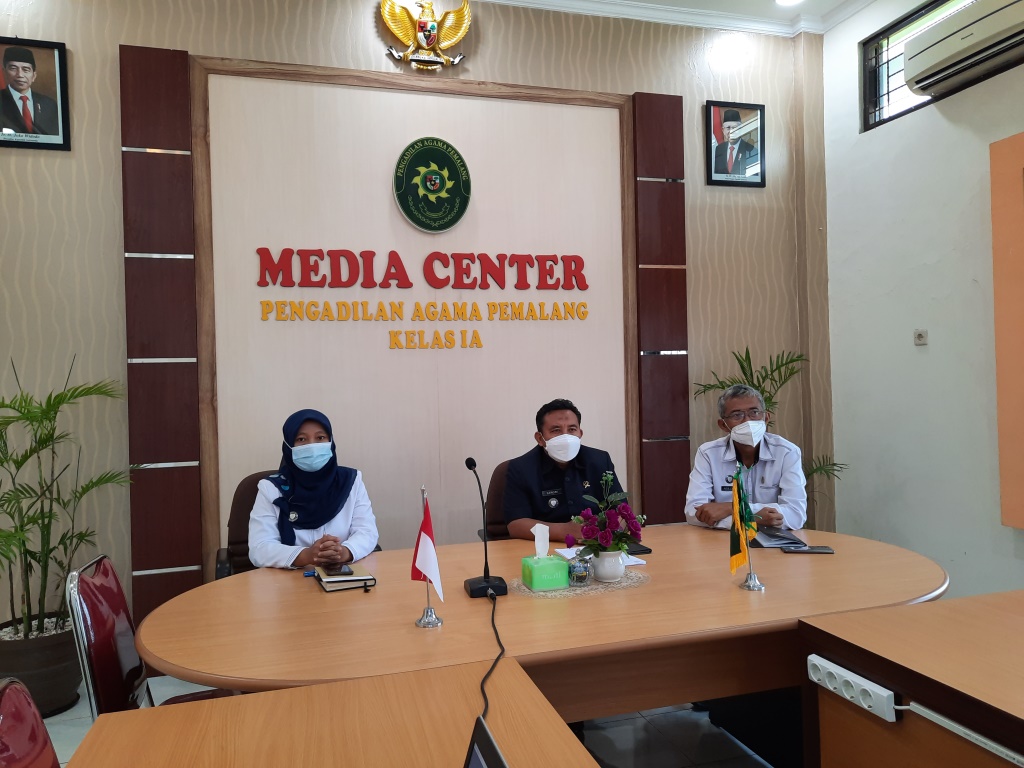 Pemalang, 11 Oktober 2021. Dalam rangka Kegiatan Launching Aplikasi e-Bima (Electronic Budgeting Implementation Monitoring and Accountability) secara daring pagi ini ini Ketua Pengadilan Agama Pemalang Bapak Drs. H. Asrori, S.H., M.H. beserta Panitera Afif Eko Sulistiono, S.H. dan Sekretaris Ibu Mulyatun, S.H. mengikuti acara launching tersebut melalui aplikasi zoom meeting di Ruang Media Center Pengadilan Agama Pemalang.