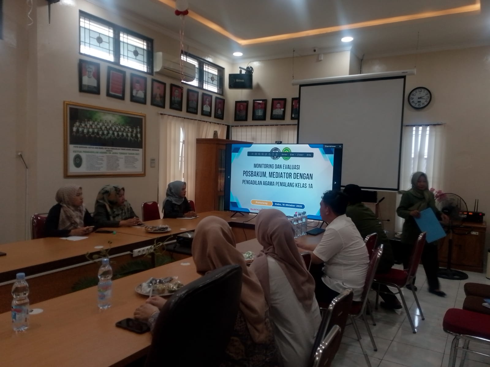 Rabu tanggal 15 Oktober 2025 pukul 14.00 WIB, bertempat di Media Center Pengadilan Agama Pemalang berlangsung Acara Monitoring dan Evaluasi Antara Posbakum, Mediator dengan Pengadilan Agama Pemalang. Dalam acara tersebut di hadiri oleh Wakil Ketua Pengadilan Agama Pemalang, Panitera, Pejabat Struktural, Fungsional, PPPK, Mediator dan Petugas Posbakum. Monev tersebut di pimpin langsung oleh Wakil Ketua Pengadilan Agama Pemalang Dr. H. Fahmi, S.Ag, M.H. beliau menyampaikan banyak terima kasih atas kehadiran posbakum dan mediator di Pengadilan Agama Pemalang. Monitoring dan Evaluasi ini bertujuan untuk meningkatkan Pelayanan Posbakum terkait dalam pembuatan Gugatan dan Permohonan sehingga data yang di dapat sesuai dengan fakta. Untuk Upaya meningkatkan keberhasilan Mediasi Pengadilan Agama Pemalang melakukan monitoring dan evaluasi rutin terhadap mediator non-hakim, menambah jumlah mediator agar lebih banyak kasus dapat diatasi secara damai, serta meningkatkan kualitas proses mediasi melalui pelatihan dan pemahaman mendalam akan kebutuhan para pihak mencari solusi yang saling menguntungkan, untuk memastikan efektivitas mediasi yang dilakukan. Hal ini bertujuan untuk terus meningkatkan keberhasilan mediasi secara berkelanjutan.