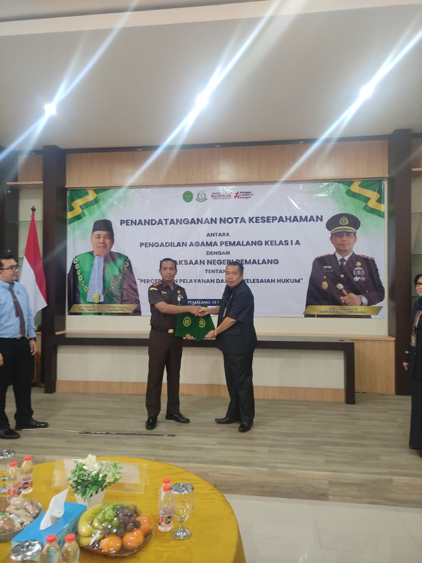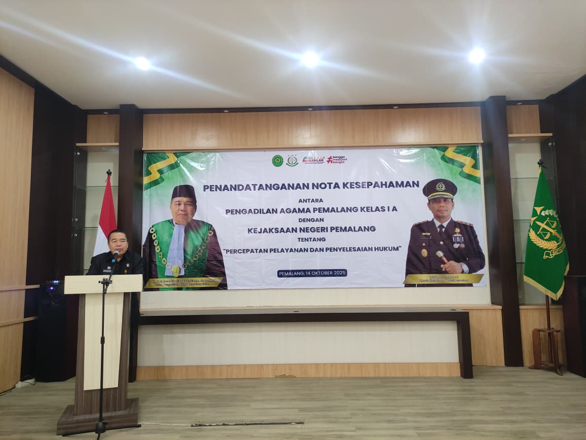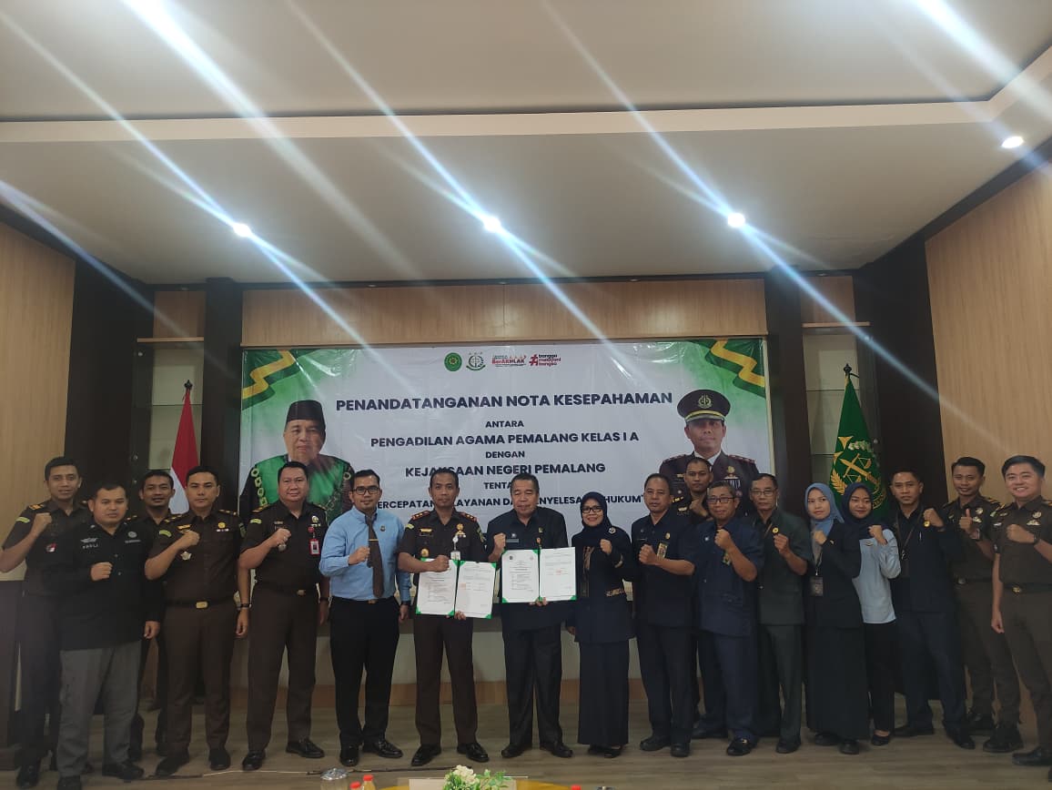 Pada hari Selasa tanggal 14 Oktober 2025 Pengadilan Agama Pemalang dan Kejaksaan Negeri Pemalang secara resmi melaksanakan Penandatanganan Nota Kesepahaman Tentang Pelayanan dan Penyelesaian Hukum. Acara tersebut bertempat di Aula Kejaksaan Negeri Pemalang. Dalam acara tersebut dilakukan langsung oleh Ketua Pengadilan Agama Pemalang, H. Solahuddin Sibagabariang, S.Ag, M.H.  sebagai Pihak Kesatu dan Kepala Kejaksaan Negeri Pemalang, Muib, S.H, M.H.Li.  sebagai Pihak Kedua. Acara tersebut di hadiri oleh Pejabat Struktural dan Fungsional serta dari kedua Instansi tersebut.