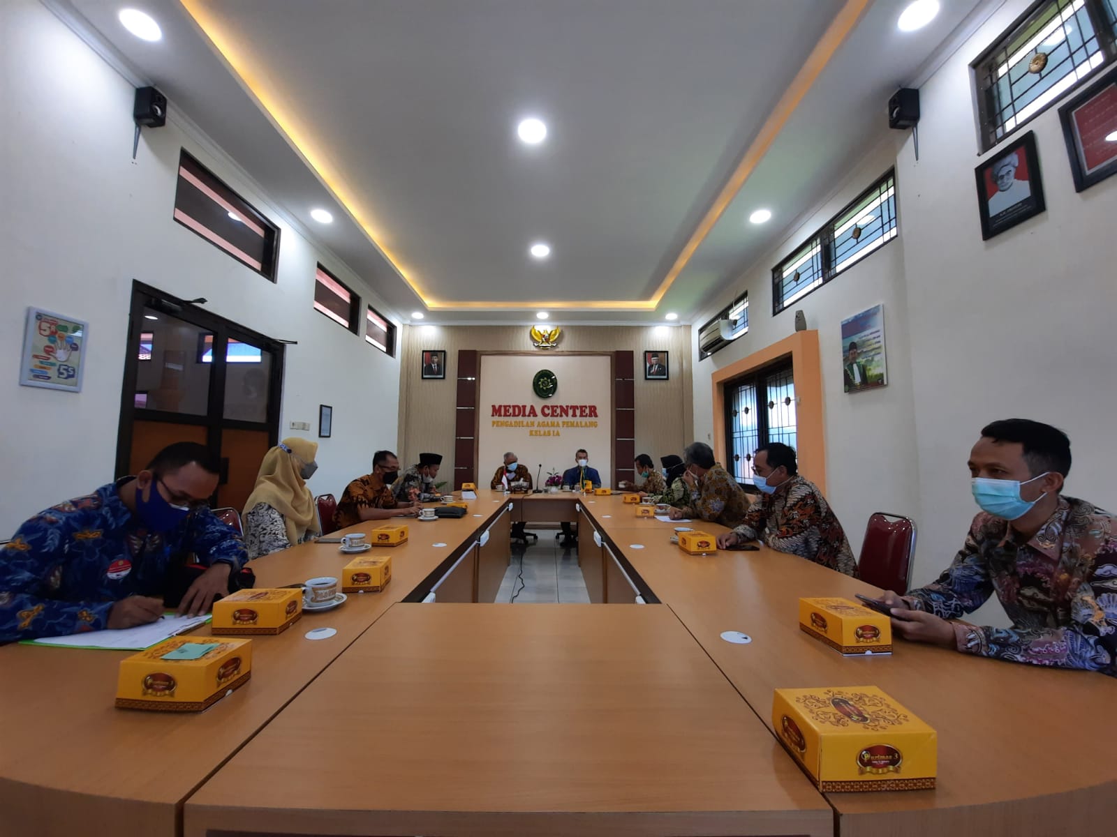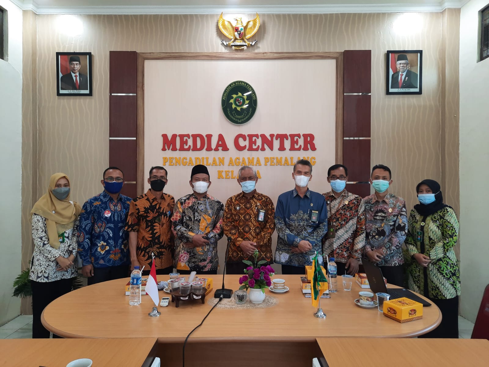 Pemalang, 17 September 2021. Hari ini Pengadilan Agama Pemalang menerima kunjungan studi banding dari Pengadilan Agama Pekalongan. Rombongan Pengadilan Agama Pekalongan yang berjumlah 5 orang dan dipimpin langsung oleh Drs. Waryono, M.H., tiba sekitar pukul 09.00 WIB dan diterima oleh Ketua APM/ZI Pengadilan Agama Pemalang Drs. H. Djuwadi, S.H., M.H. di Ruang Media Center Pengadilan Agama Pemalang.