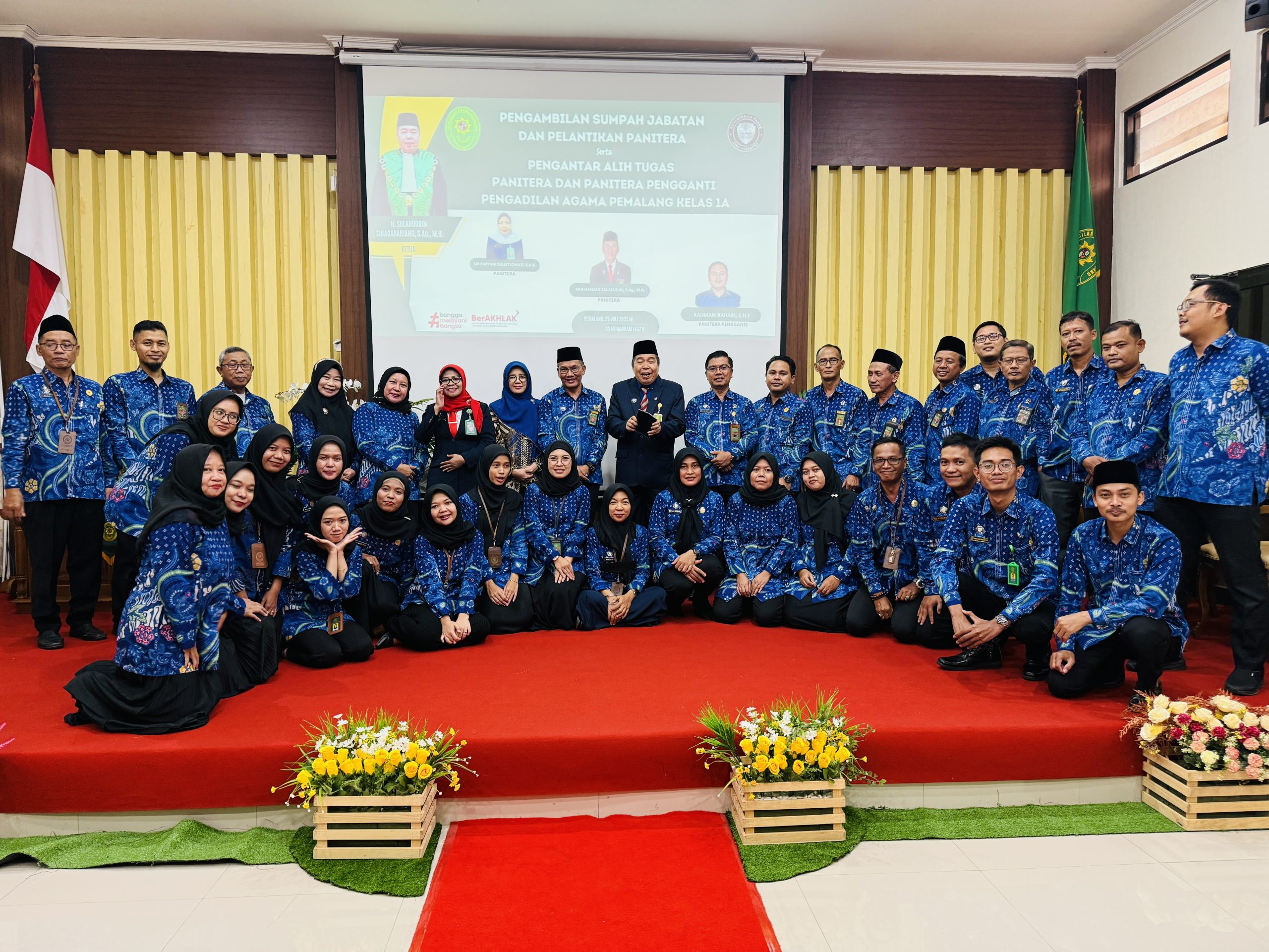 Bertempat di Ruang Sidang Utama Abu Bakar Ash Shidiq pukul 9.00 di laksanakan Pelantikan dan Pengambilan Sumpah Jabatan Panitera Pengadilan Agama Pemalang Sri Paryani Sulistyowati, S.Ag. dan Pengantar Alih Tugas Panitera Muhammad Salafudin, S.Ag.,M.H (menjadi Panitera PTA Jayapura), Panitera Pengganti Rahman Bahari, S.H.I (menjadi Panitera Pengganti Pengadilan Agama Mungkid).