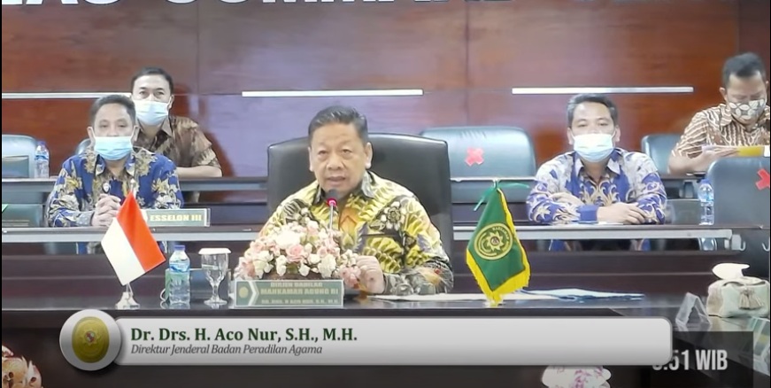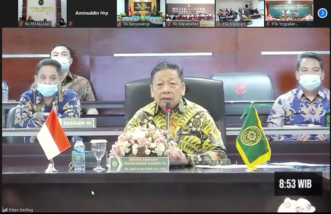 “Tahun 2020, merupakan periode yang sulit. khususnya akibat situasi pandemi covid-19 yang mendera seantero Bumi. Namun demikian, situasi ini justru semakin meningkatkan kualitas dan prestasi Badan Peradilan Agama, banyak inovasi dan kreasi yang dilahirkan oleh Badilag” kata Aco Nur mengawali pembinaannya.Untuk tahun 2021, Dirjen Badilag mengimbau kepada seluruh satker, baik tingkat pertama maupun tingkat banding agar tetap mempertahankan predikat WBK, bagi yang belum meraihnya, tahun 2021 wajib untuk memperoleh WBK. SIPP dan Penilaian kinerja 3 bulan harus selalu ditingkatkan, hal itu merupakan bukti pelayanan kepada masyarakat yang baik, tidak boleh ada satker yang “kuning” SIPP nya, semua harus berwarna hijau. Ungkap Dirjen Badilag.