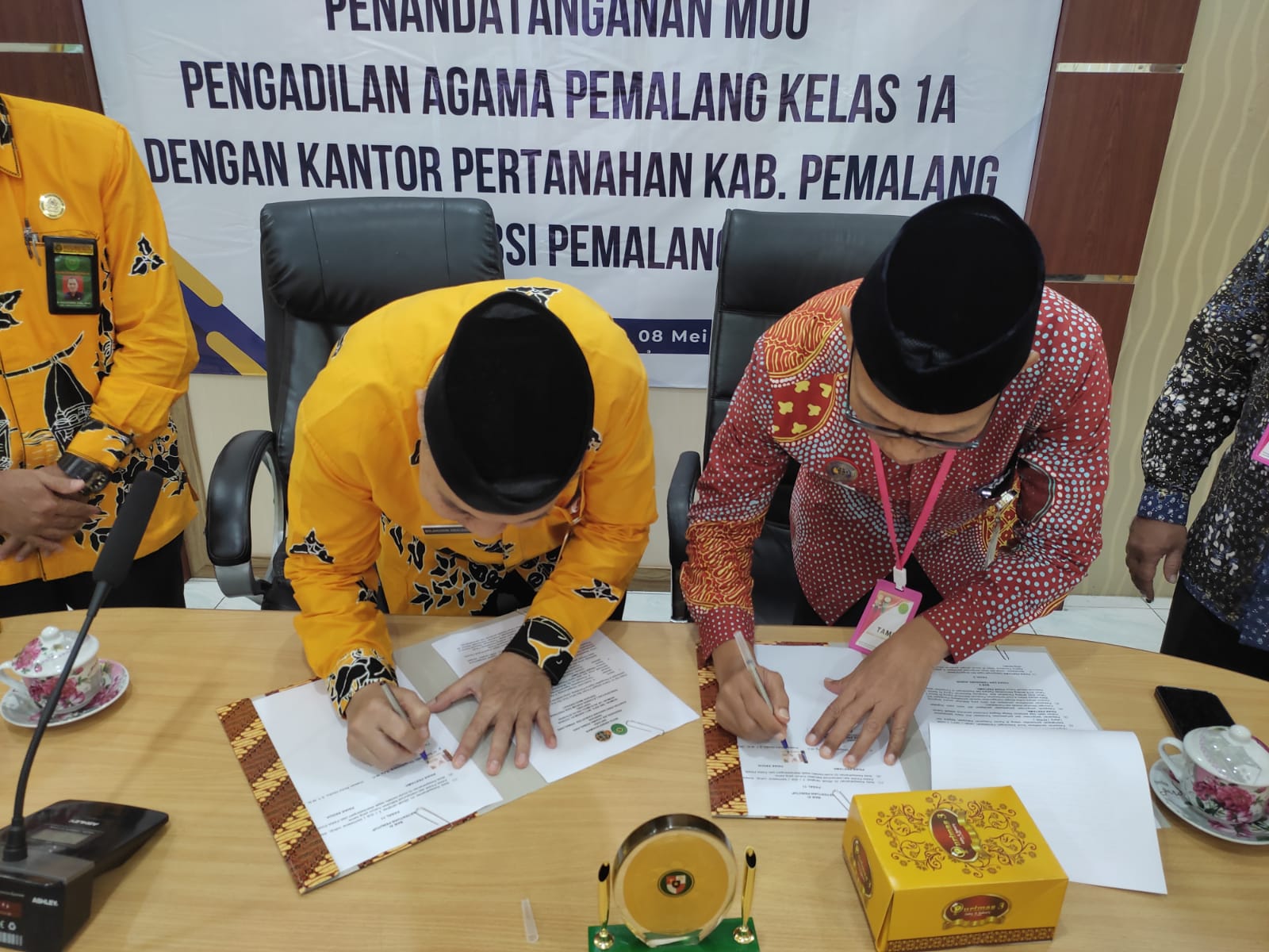 Penandatanganan dilakukan oleh Ketua Pengadilan Agama Pemalang Bapak H. Solahuddin Sibagabariang, S.Ag., M.H dan Kepala Kantor Pertanahan Kabupaten Pemalang, Bapak Imawan Abdul Ghofur, S.T, M.Si, QRMP serta disaksikan oleh para pejabat dari instansi terkait.