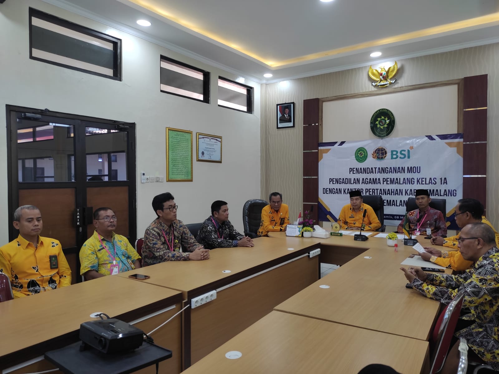 Kamis, 8 Mei 2025. Bertempat di Media Center Pengadilan Agama Pemalang Dilaksanakan Penandatanganan Kerjasama (MoU) antara Pengadilan Agama Pemalang Dengan Kantor Pertanahan Kabupaten Pemalang. Ini adalah salah satu upaya meningkatkan pelayanan publik di bidang hukum dan pertanahan.
