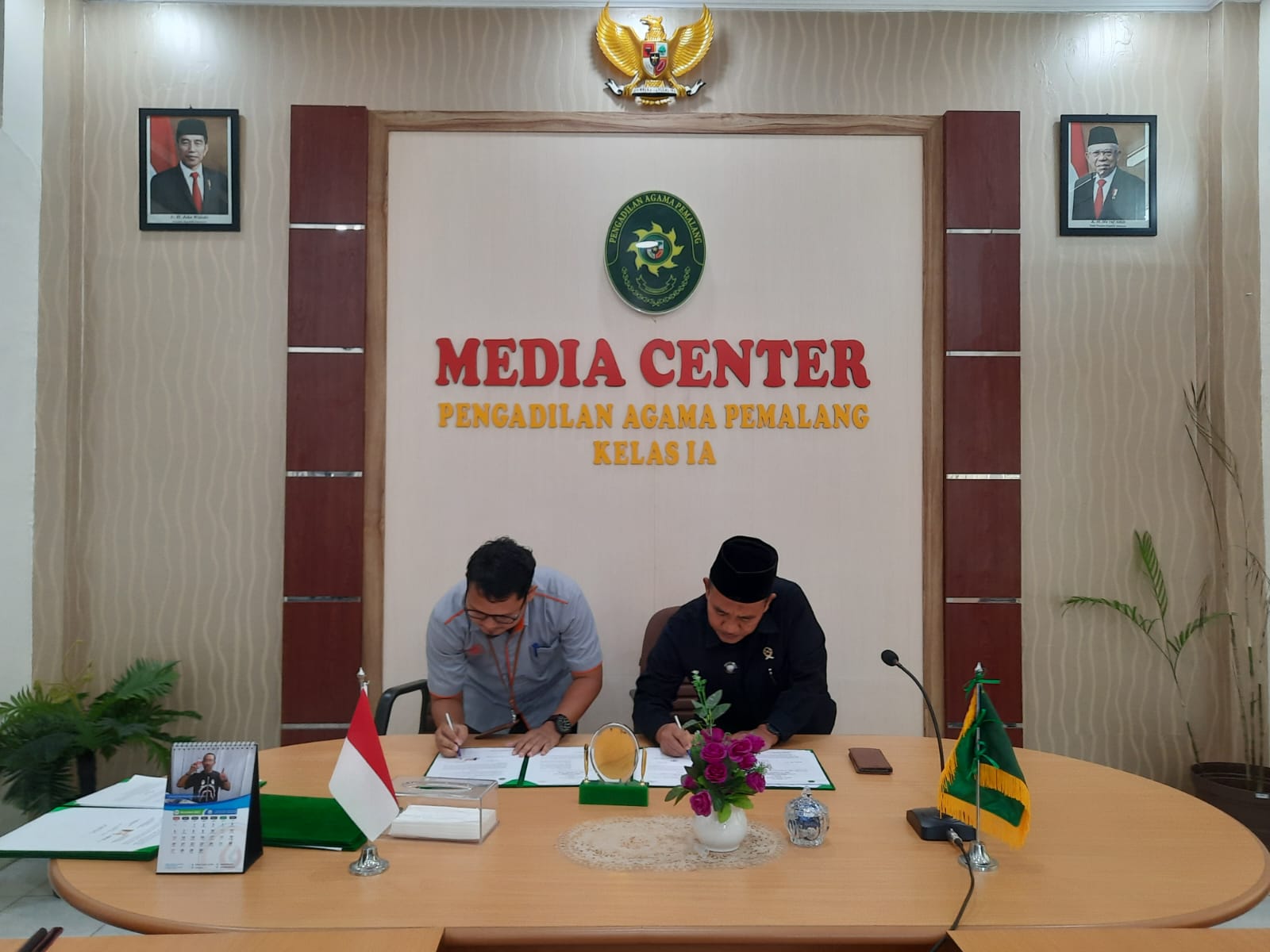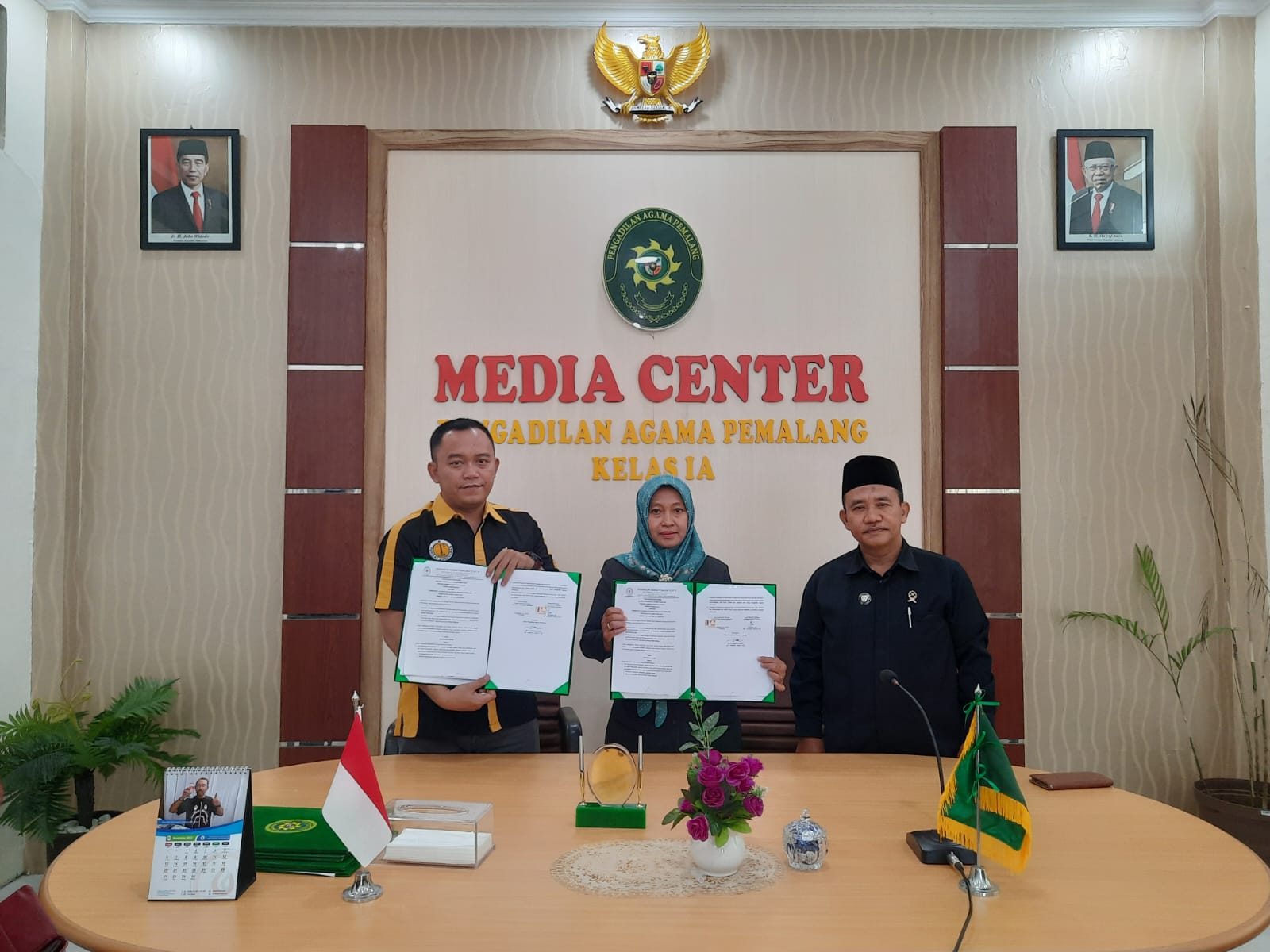 Pemalang, 28 Desember 2022. Bertempat di Ruang Media Center Pengadilan Agama Pemalang Kelas IA hari ini pukul 10.00 WIB dilaksanakan penandatanganan nota kesepakatan antara PA Pemalang dengan Kankemenag Kab Pemalang, PA Pemalang dengan PT Pos Indonesia cabang Pemalang, dan PA Pemalang dengan Pos Bantuan Hukum LBH Perisai Kebenaran. Pelaksanaan penandatanganan MoU ini guna memperpanjang kerjasama yang juga telah terjalin di tahun sebelumnya.