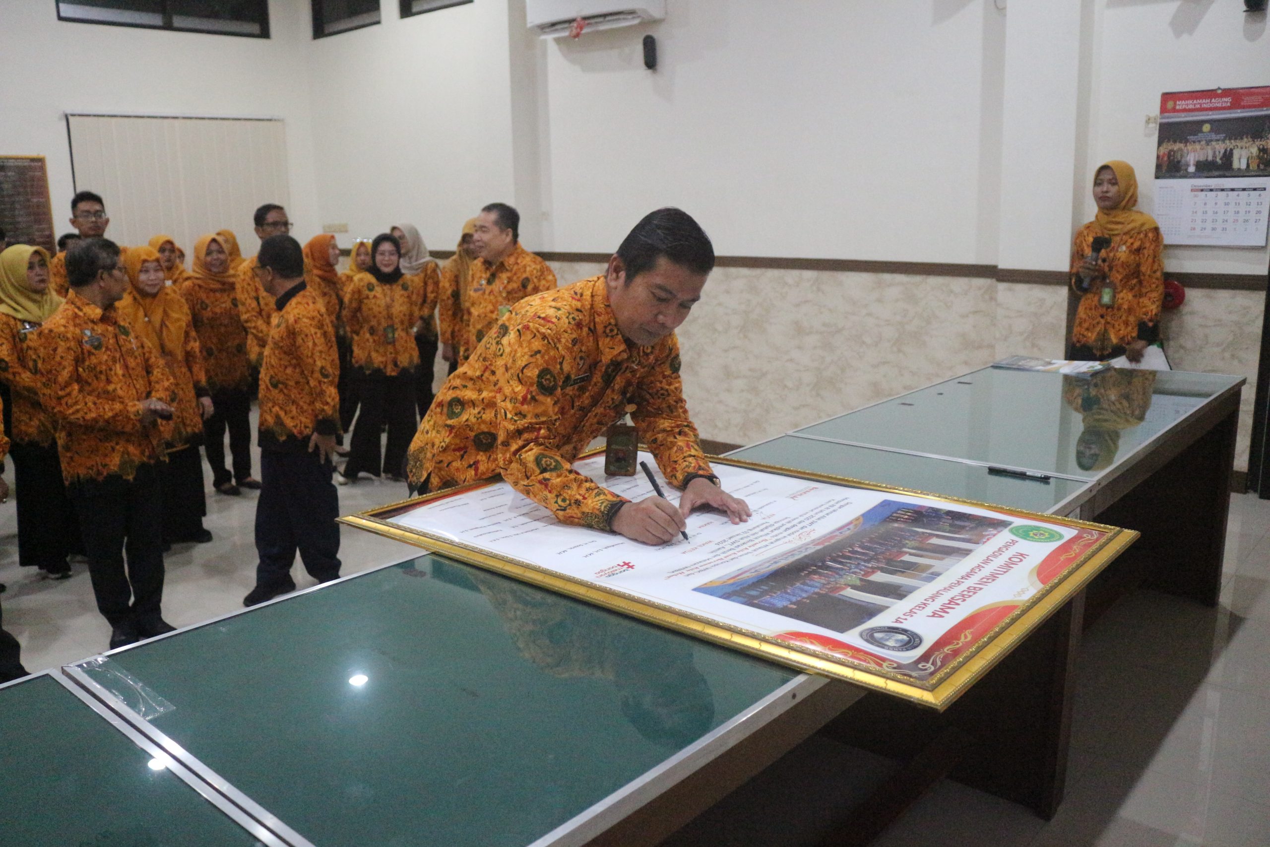 Pelaksanaan ini diawali dengan pengucapan Komitmen Bersama, disusul dengan penandatanganan dokumen oleh seluruh aparatur sebagai bentuk janji setia terhadap profesi dan Negara.