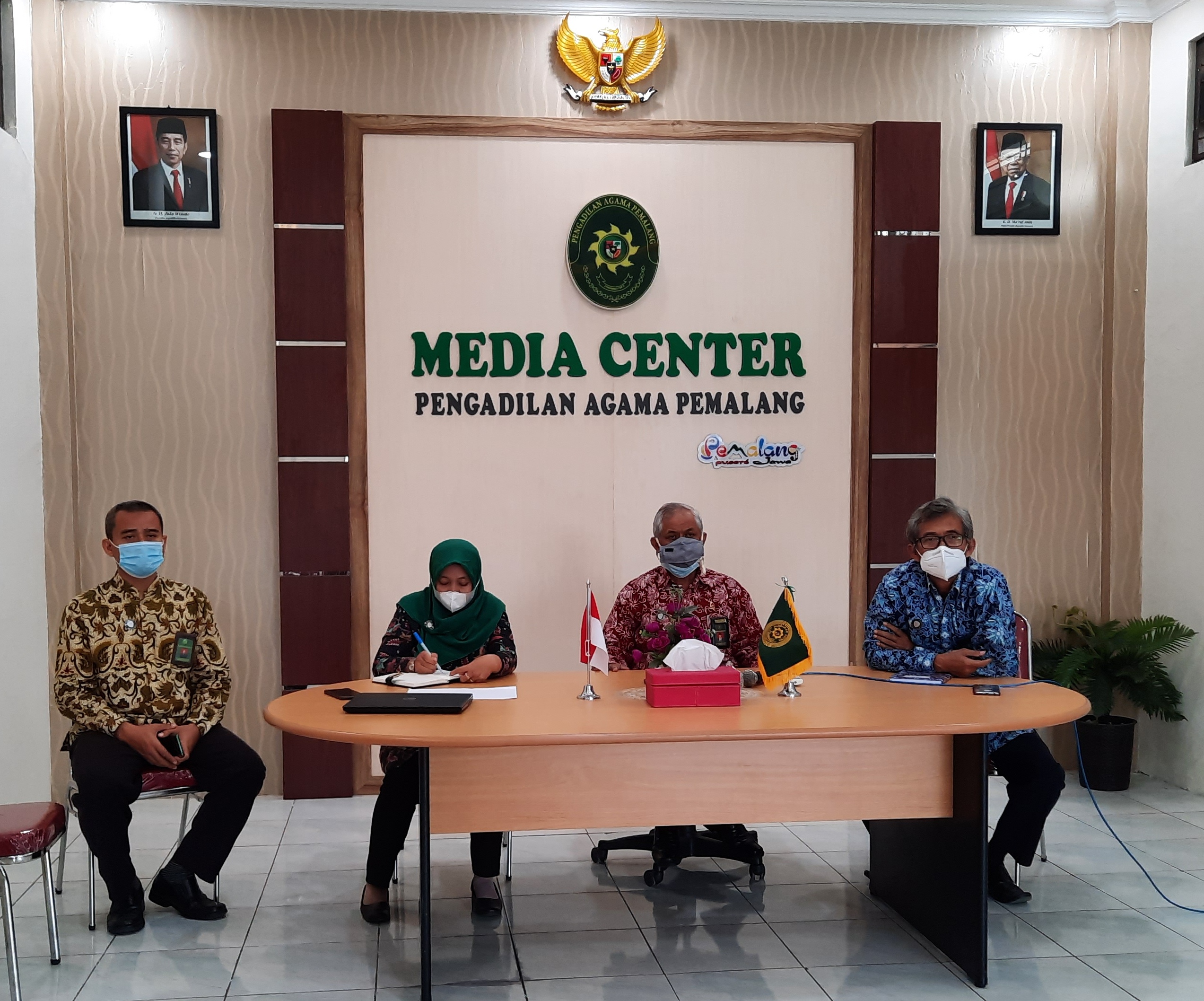 Pemalang, 23 Juli 2021. Dalam rangka pemantapan pelaksanaan pembangunan Zona Integritas menuju Wilayah Bebas dari Korupsi (WBK) dan Wilayah Birokrasi Bersih dan Melayani (WBBM), Ditjen Badan Peradilan Agama melakukan pendampingan persiapan penilaian WBK dan WBBM di lingkungan peradilan agama dengan prioritas satuan kerja yang diusulkan ke TPI tahun 2021. Acara pendampingan dilakukan secara daring melalui aplikasi zoom meeting yang dilaksanakan pada tanggal 23 Juli 2021 dan 26 Juli 2021. Di hari pertama tanggal 23 Juli 2021 acara dibagi menjadi dua sesi. Untuk sesi pertama dimulai pukul 08.30 WIB hingga pukul 11.45 WIB dan untuk sesi kedua dimulai pukul 13.30 hingga pukul 16.30 WIB. Untuk Pengadilan Agama Pemalang diikuti oleh Ketua ZI Pengadilan Agama Pemalang Bapak Drs. H. Djuwadi, S.H., M.H. Panitera Bapak Afif Eko Sulistiono, S.H., Sekretaris Ibu Mulyatun, S.H. dan Kepala Sub Bagian Perencanaan Teknologi Informasi, Dan Pelaporan Bapak H Ahmad Ali Syahbana, S.E., S.T., M.M. (yulitaintan)