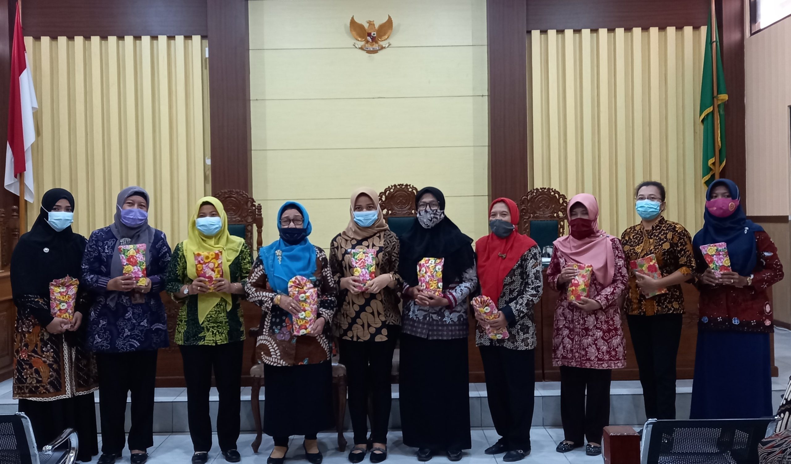 Pemalang 19 Maret 2021, pada pukul 09.00 WIB bertempat di ruang sidang Utama Pengadilan Agama Pemalang, diselenggarakan pertemuan rutin Dharmayukti Karini (DYK) cabang Pemalang. Organisasi Dharmayukti Karini Cabang Pemalang ini merupakan organisasi persatuan perempuan yang pengurusnya terdiri dari gabungan istri para pejabat struktural maupun pegawai Pengadilan Agama Pemalang dan Pengadilan Negeri Pemalang. Acara dibuka oleh ibu Titik Wismaningsih, S.Pd Djuwadi yang menggantikan Ketua Dharmayukti Karini Cabang Pemalang yaitu Ibu Nurmalina Iko Sudjatmiko yang berhalangan hadir. Tak lupa diawali dengan menyanyikan lagu hymne dan mars Dharmayukti Karini. Acara selanjutnya yaitu laporan dari sekretaris Dharmayukti Karini oleh ibu Indi yang membacakan notulen pertemuan Dharmayukti sebelumnya yang telah diselenggarakan pada tanggal 28 Januari 2021 lalu. Setelah pembacaan notulen oleh ibu sekretaris acara dilanjutkan dengan pembacaan laporan dari bendahara ibu Umamah dan pembacaan-pembacaan laporan dari masing-masing seksi.