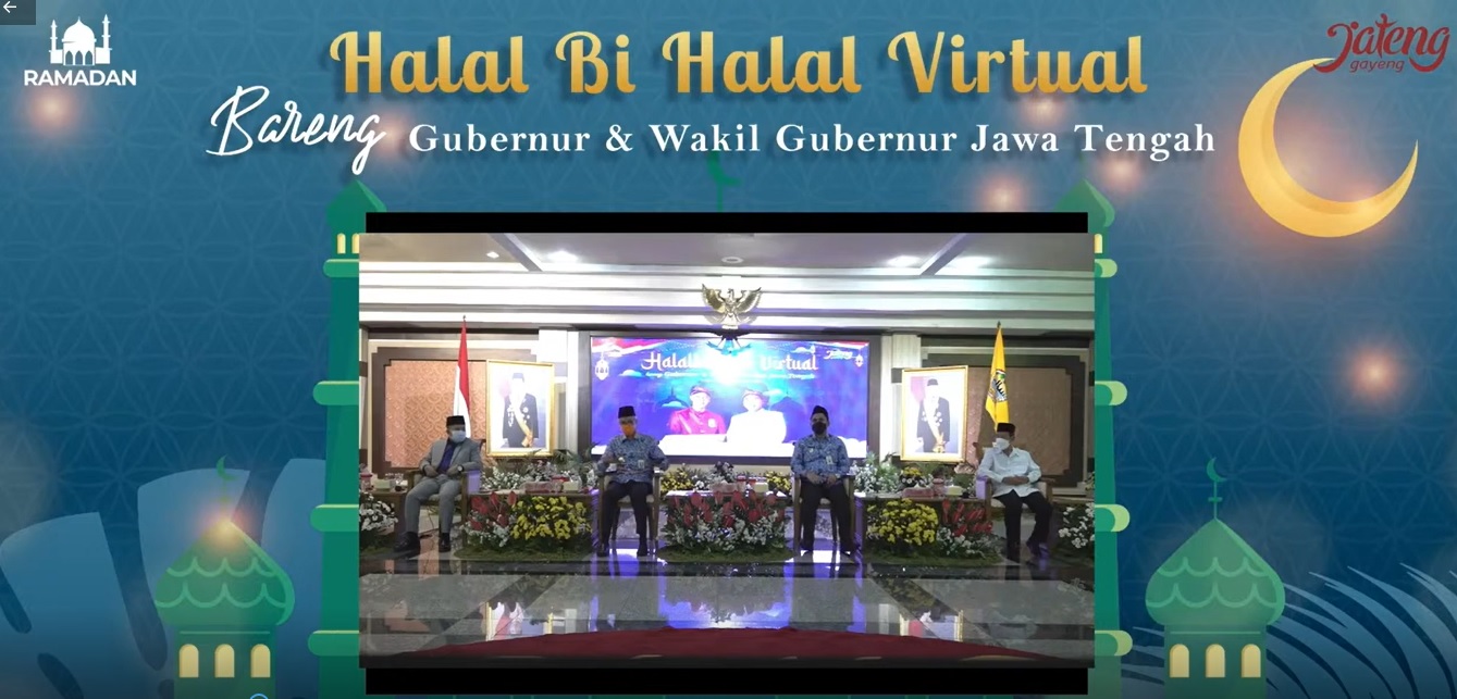 Acara Halal Bihalal Secara virtual di buka dengan pembacaan Ayat Suci Al Qur’an oleh ustadz rohani, selanjutnya gubernur Jawa Tengah Ganjar Pranowo melakukan Sambutan nya dan mengucapkan terima kasih kepada para peserta halal bihalal melalui zoom meeting yang telah menyempatkan mengikuti acara ini.