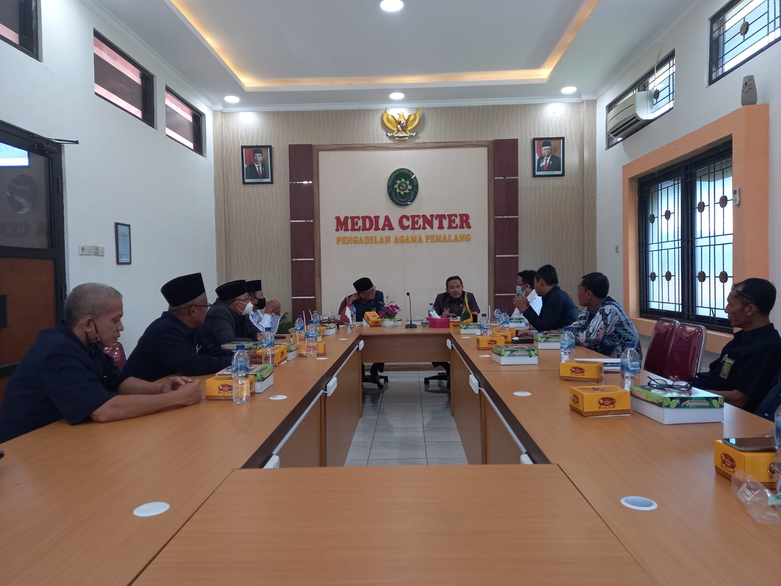 Pemalang, 30 Agustus 2021. Hari ini Pengadilan Agama Pemalang menjadi tuan rumah dalam acara Rapat Koordinasi Koordinator Pengadilan Agama Wilayah Pekalongan. Adapun peserta dari rakor ini adalah para ketua dan panitera Pengadilan Agama yang termasuk dalam koordinator wilayah Pekalongan yaitu Pengadilan Agama Pekalongan, Pengadilan Agama Slawi, Pengadilan Agama Brebes, Pengadilan Agama Pemalang, Pengadilan Agama Kajen, Pengadilan Agama Tegal, dan Pengadilan Agama Batang. Acara di mulai pukul 08.00 WIB bertempat di Media Center Pengadilan Agama Pemalang. (yip)