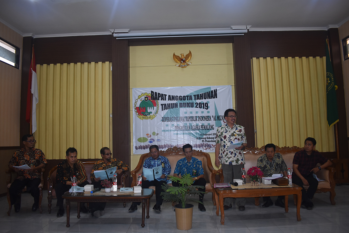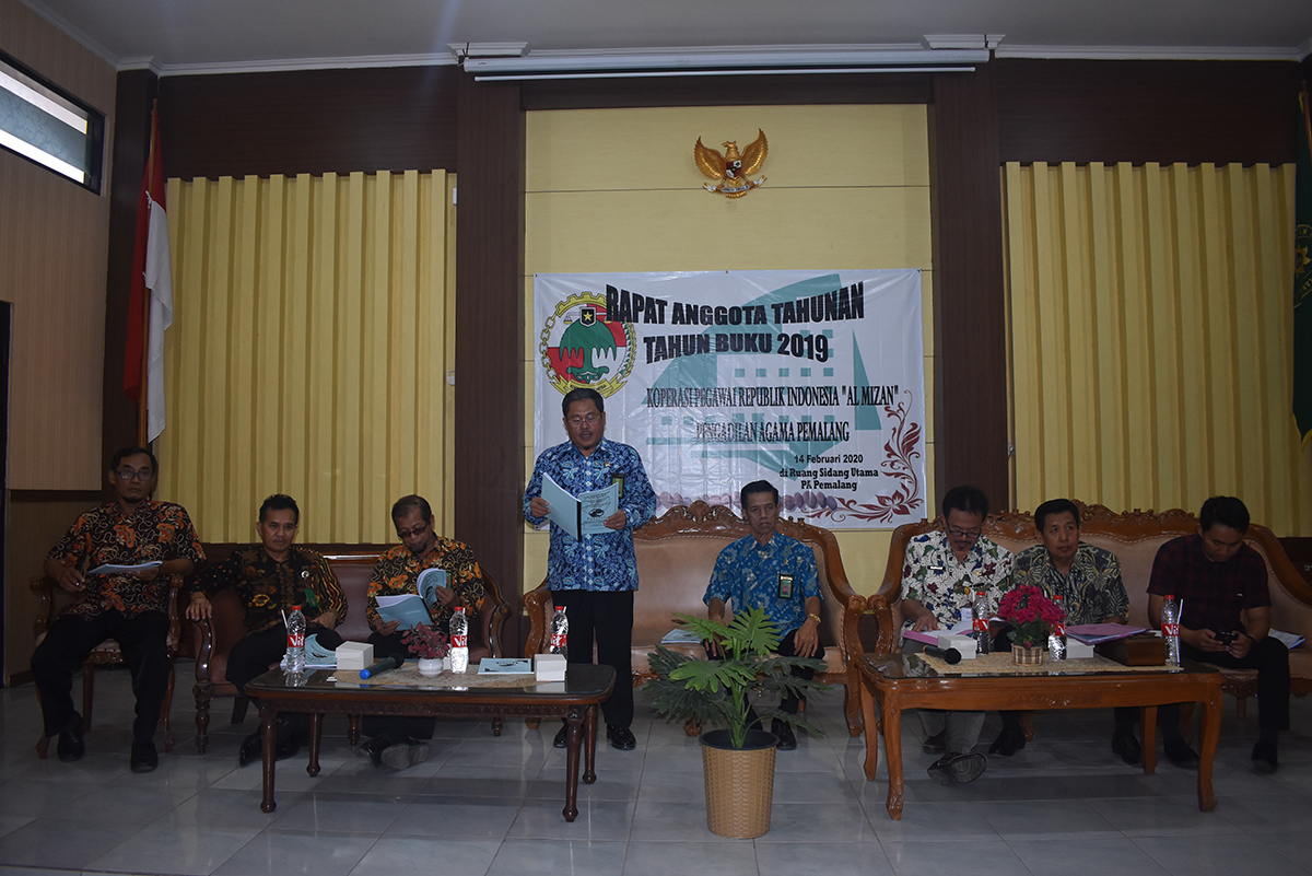 pa-pemalang.go.id. Wakil Ketua Pengadilan Agama Pemalang Drs. H. Adroni membuka dengan resmi Rapat Anggota Tahunan (RAT) KPRI AL-Mizan tahun buku 2019 pada hari Jum’at 14 Februari 2020 diruang sidang utama PA Pemalang yang dihadiri seluruh pengurus, anggota, utusan PKPRI, Dekopinda, dan Dinas UKM. Perindag Kabupaten Pemalang selaku pembina Koperasi AL-Mizan PA Pemalang.
