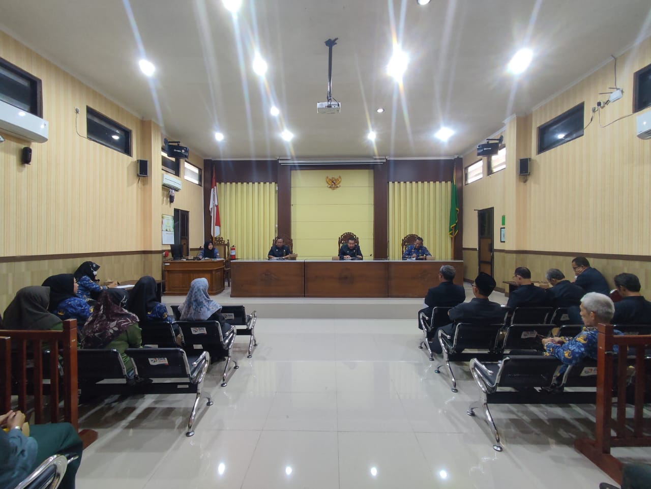 Bertempat di Ruang Sidang Utama Abu Bakar Ash Shidiq pukul 13.30 di adakan rapat dinas bulan Perdana di Bulan Januari 2024 Aparatur Pengadilan Agama Pemalang.Dalam Rapat dinas Bulan ini Ketua Pengadilan Agama Pemalang Solahuddin Sibagabariang, S.Ag.,M.H melakukan evaluasi kinerja di tahun 2023 dan berharap apa yang telah baik di tahun kemarin bisa di pertahankan dan di tingkatkan, Dan mengingatkan kembali kepada Ketua tim ZI menuju WBBM untuk tetap Fokus, bekerja tepat dan cepat. Dalam Kesempatan ini Beliau juga kembali melakukan refreshment terkait dengan E court, Gugatan Sederhana, Mediasi serta Eksekusi Putusan.