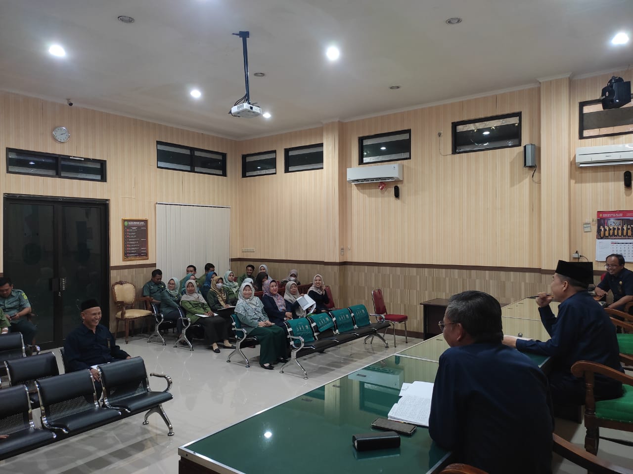 Bertempat di Ruang Sidang Utama Abu Bakar Ash Shidiq pukul 13.30 di adakan rapat dinas bulan Mei 2025 Aparatur Pengadilan Agama Pemalang. Dalam Kesempatan ini Ketua Pengadilan Agama Pemalang H. Solahuddin Sibagabarinag, S.Ag.,M.H, Menyampaikan terima kasih atas prestasi yang di raih saat PTA Semarang Awards, dan berharap bisa di pertahankan dan di tambahkan prestasi lainnya. Dan tidak lupa untuk tetap melaksanakan 5S (Senyum, Salam, Sapa, Sopan, Santun) & 5 Rin (Ringkas, Rapi, Resik, Rawat, Rajin, Indah, Nyaman) dalam menjalankan tugas kita.