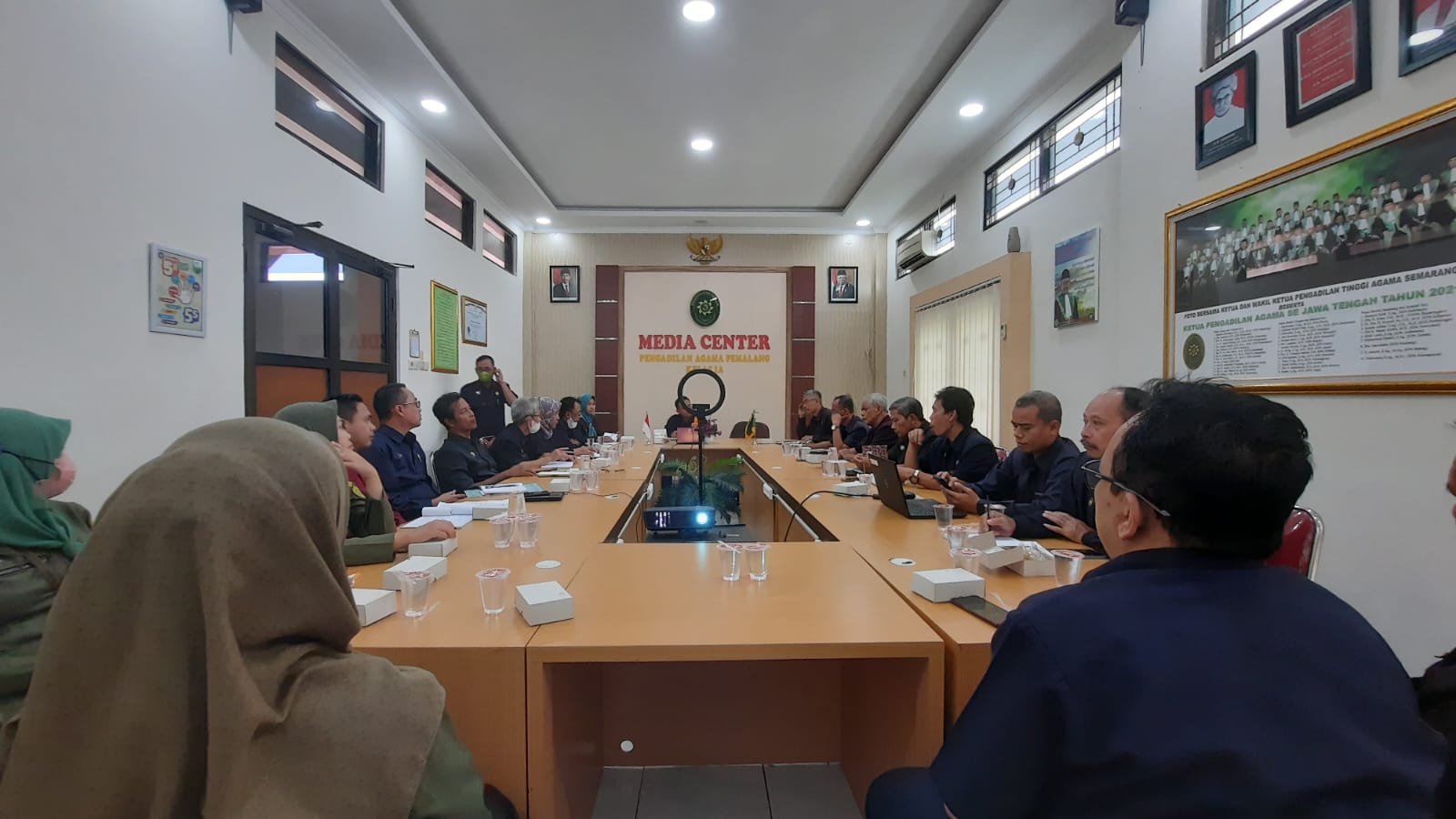 Pemalang, 07 Februari 2023. Memasuki bulan kedua di tahun 2023 ini Pengadilan Agama Pemalang Kelas 1A melaksanakan rapat bulanan yang dipimpin oleh Ketua Pengadilan Agama Pemalang Drs. H. Asrori, S.H., M.H. Rapat ini diikuti oleh seluruh pegawai Pengadilan Agama Pemalang di Ruang Media Center dan dimulai pukul 13.00 WIB.
