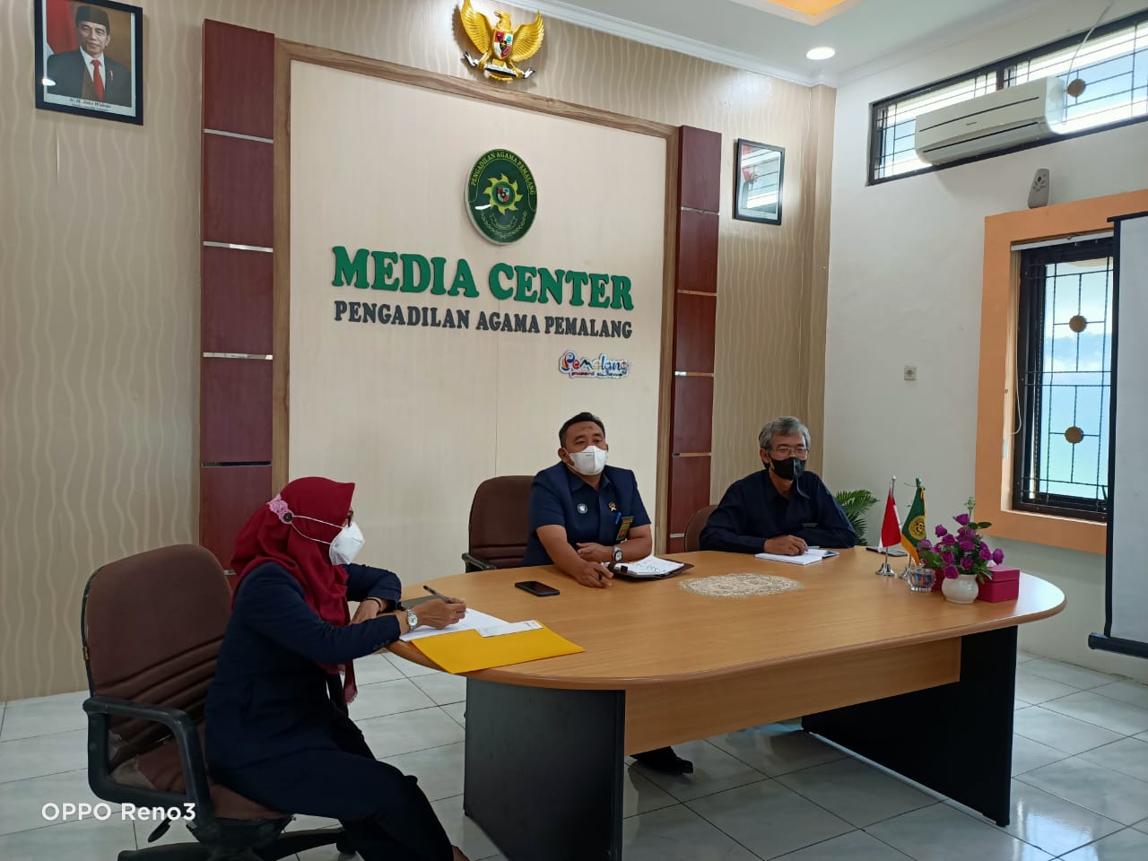 Pemalang, 21 Juli 2021. Sebagai salah satu bentuk usaha Pengadilan Agama Pemalang dalam meningkatkan pelayanan kepada masyarakat pencari keadilan hari ini dilakukan rapat pembinaan dalam penyelesaian perkara SIPP yang dilaksanakan pada pukul 13.30 WIB di Ruang Media Center Pengadilan Agama Pemalang. Kegiatan rapat ini dihadiri oleh ketua pengadilan Agama Pemalang Bapak Drs. H. Asrori, S.H.,M.H. Panitera bapak Afif Eko Sulistiono, S.H , Petugas PTSP, Petugas Arsip, dan Petugas IT. Dalam rapat yang dipimpin langsung oleh bapak ketua pengadilan membahas tupoksi masing-masing personal agar lebih jelas dan terarah. Diharapkan dengan diadakan rapat ini kedepannya masing-masing pegawai Pengadilan Agama Pemalang bisa lebih maksimal dalam menjalankan tugas nya. (yulitaintan)