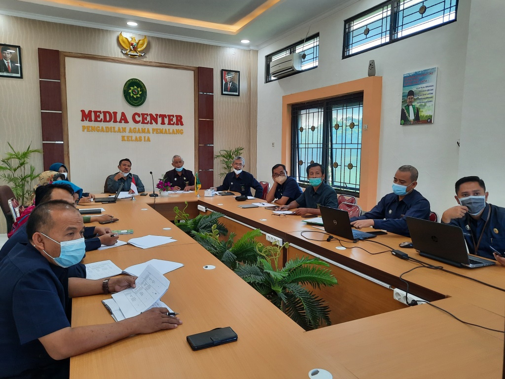 Pemalang, 02 November 2021. Sebagai tindak lanjut dari hasil temuan Assesor Eksternal Surveillance APM tahun 2021, pagi ini pukul 08.00 WIB bertempat di Ruang Media Center, Pengadilan Agama Pemalang melakukan rapat yang dihadiri oleh Ketua Pengadilan Agama Pemalang, Ketua APM, Koordinator Assesor Internal, Panitera, Sekretaris, Para Panitera Muda dan Kasubag, serta analis kepegawaian Pengadilan Agama Pemalang. Agenda dalam rapat ini adalah untuk membahas kekurangan satu per satu temuan dari assessor eksternal surveillance agar bisa segera diperbaiki. Eviden yang menjadi temuan harus segera diperbaiki dalam waktu satu minggu untuk segera kembali di upload. (yip)