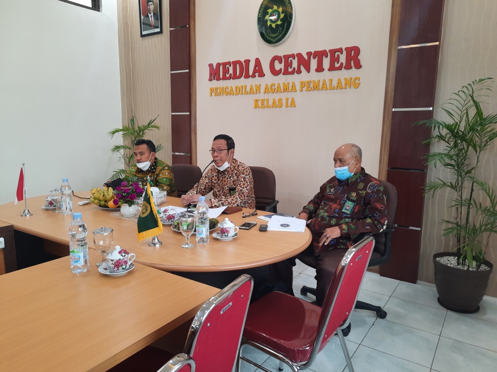 Pengadilan Agama Pemalang Kelas 1A pada hari Kamis 09 Desember 2021 pukul 09.00 WIB mendapatkan kunjungan dari Hakim Tinggi Pengawas Daerah Pengadilan Tinggi Jawa Tengah. Kunjungan kali ini dalam rangka Pengawasan dan Pembinaan Reguler di Pengadilan Agama Pemalang Kelas IA yang dipimpin oleh Bapak Drs. H. A. Agus Bahaudin, M.Hum sebagai Ketua Tim didampingi Hakim Tinggi Bapak Drs. H. Syamsudin Ahmad, S.H., M.H. dan Ibu Srie Nurhandayani, S.H., M.H.