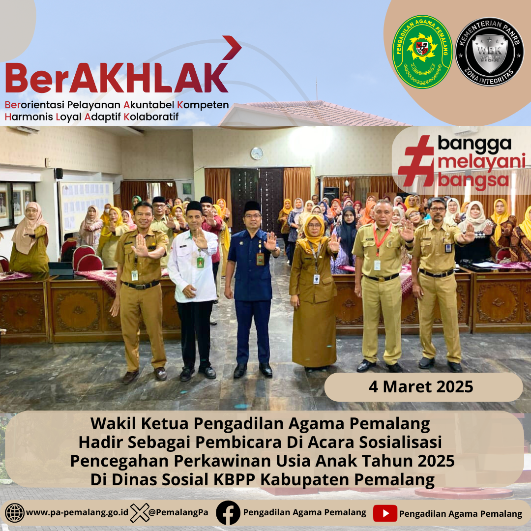 Sosialisasi Pencegahan Perkawinan Usia Anak di Dinas Sosial KBPP Kabupaten Pemalang.
