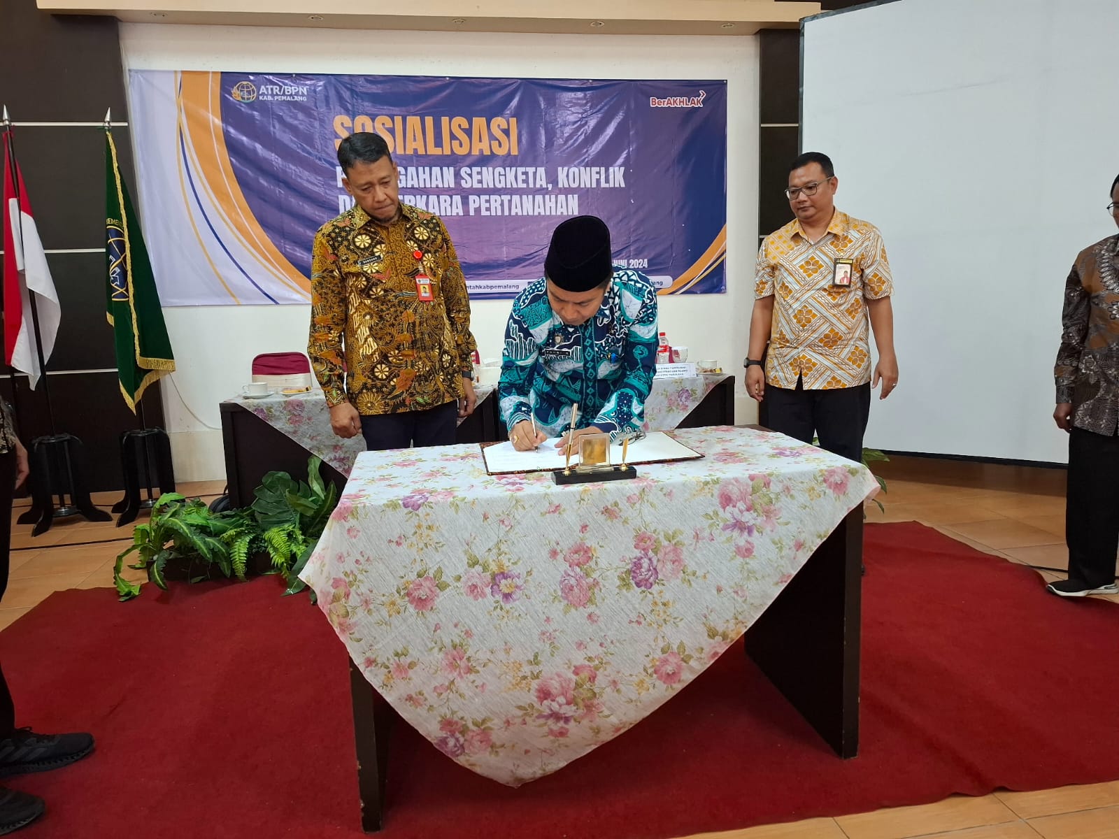 Setelah acara sosialisasi dari beberapa Instansi dilanjutkan dengan penandatanganan berita acara rencana aksi pencegahan sengketa, konflik dan perkara pertanahan.