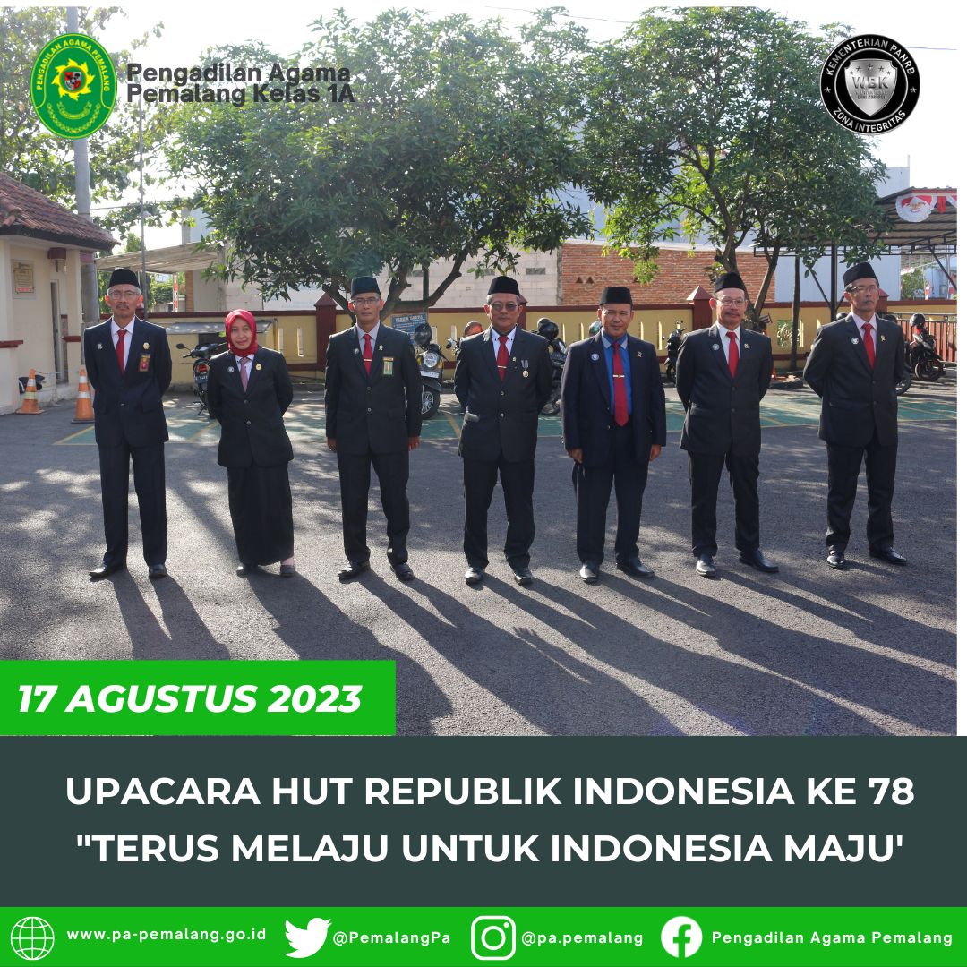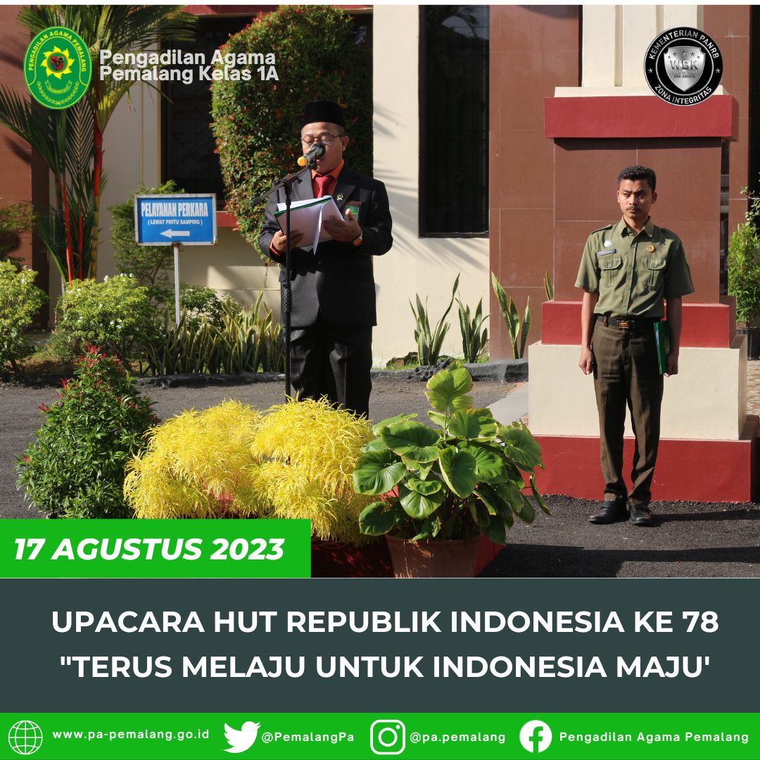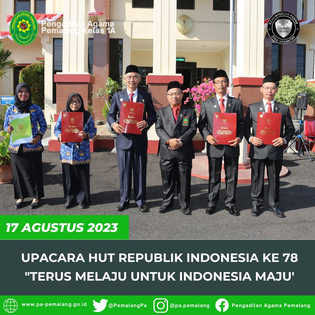 Pemalang, Kamis, 17 Agustus 2023. Pengadilan Agama Pemalang melaksanakan Upacara HUT Republik Indonesia Ke 78 di Halaman Kantor yang diikuti oleh seluruh Hakim dan Pegawai serta Siswa Prakerin dan dilanjutkan dengan penyerahan penghargaan kepada pegawai.