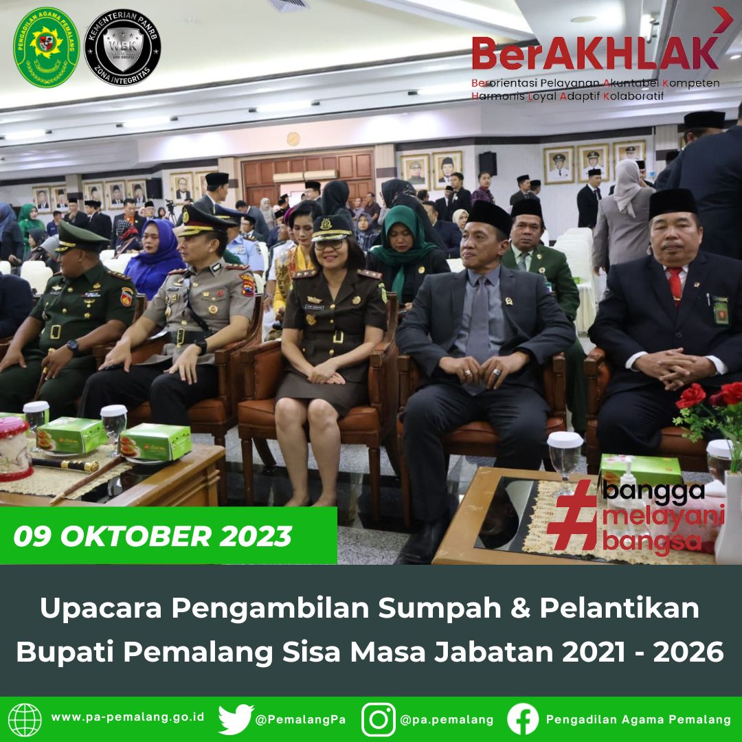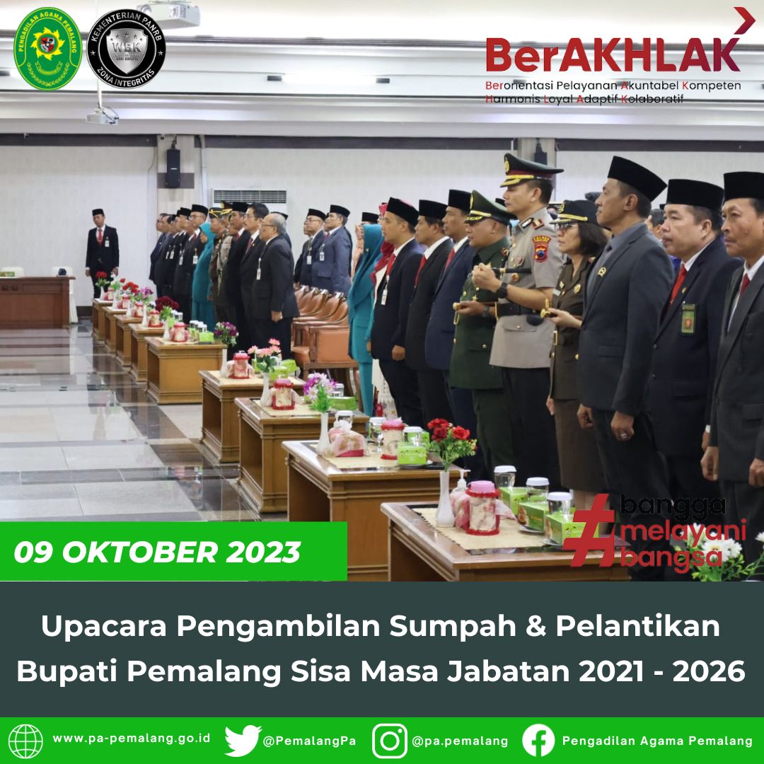 Ketua Pengadilan Agama Pemalang, Solahuddin Sibagabariang, S.Ag.,M.H. menghadiri upacara pengambilan sumpah jabatan dan pelantikan Bupati Pemalang, Bapak H. Mansur Hidayat, S.T sebagai Bupati Pemalang sisa masa jabatan 2021 – 2026.