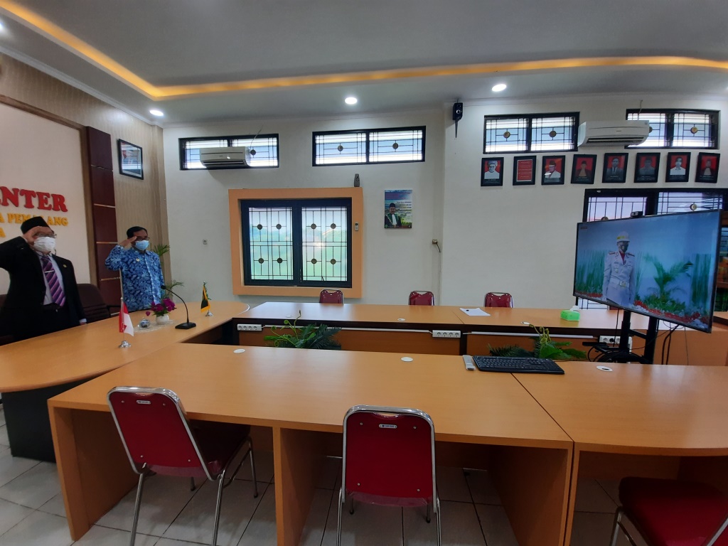 Pemalang, 01 Oktober 2021. Berdasarkan surat Sekretaris Mahkamah Agung RI, Nomor; 2118/SEK/HM.01.2/9/2021 tanggal 29 September 2021 tentang Peringatan Hari Kesaktian Pancasila Tahun 2021 , hari ini Pengadilan Agama Pemalang mengikuti upacara Peringatan Hari Kesaktian Pancasila Di Monumen Pancasila Sakti Jakarta secara virtual yang dilaksanakan di Ruang Media Center Pengadilan Agama Pemalang dan diikuti oleh perwakilan Hakim dan Kasubag. Hadir dalam upacara tersebut Hakim Drs. Karyadi dan Kasubag Kepegawaian, Organisasi, Dan Tata Laksana Bapak Slamet, A.Ag, M.H. Upacara dimulai pukul 08.00 WIB dengan tetap memperhatikan protokol kesehatan. (yip)