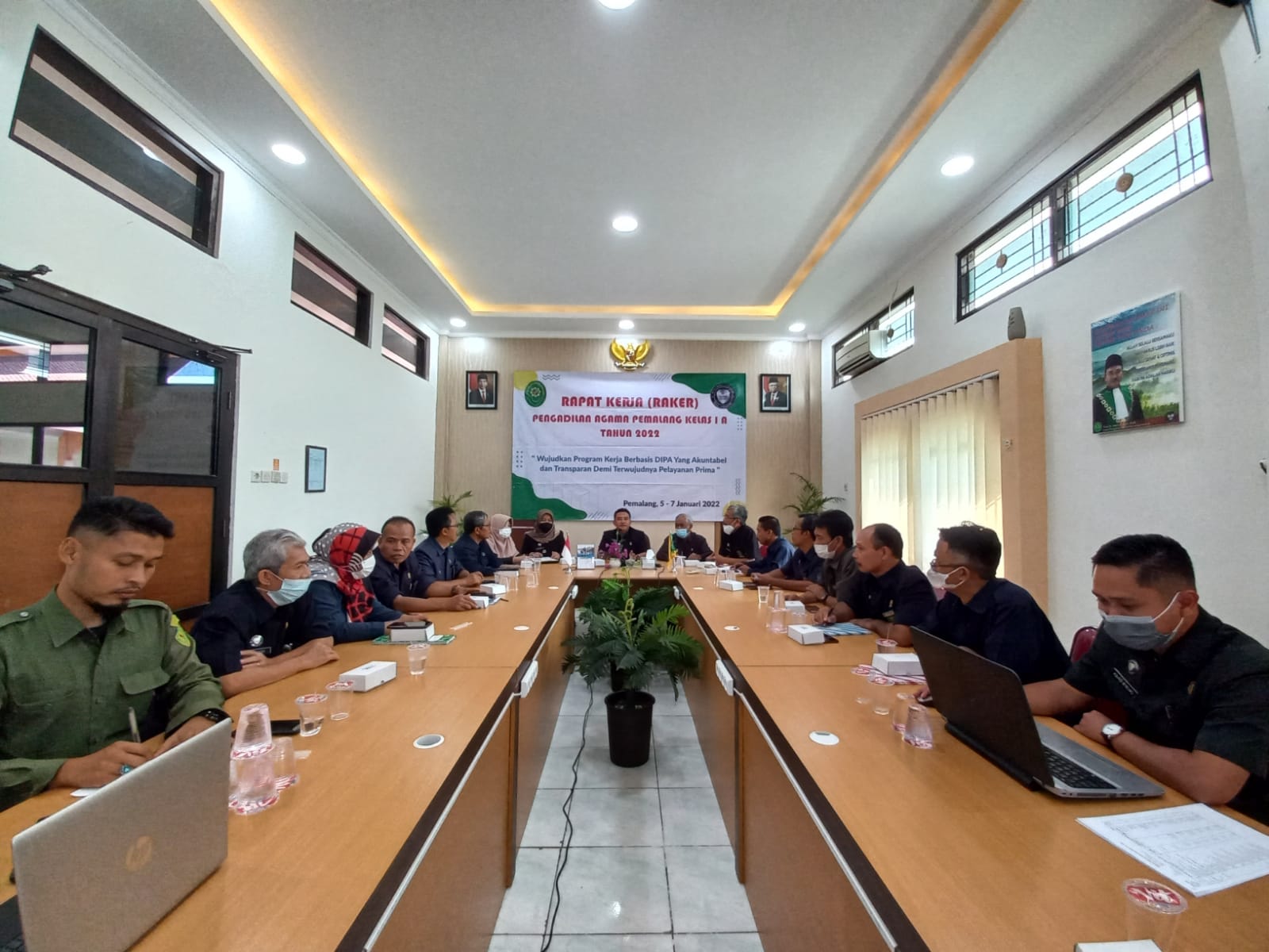 Dalam rangka mewujudkan hasil kinerja yang berkualitas diperlukan suatu perencanaan yang handal, untuk itu pada awal tahun 2022 ini Pengadilan Agama Pemalang Kelas IA menggelar kegiatan Rapat Kerja yang dilaksanakan selama tiga hari yaitu dimulai pada hari ini Rabu 05 Januari 2021 hingga Jumat 07 Januari 2021 di Ruang Media Center Pengadilan Agama Pemalang Kelas 1A.