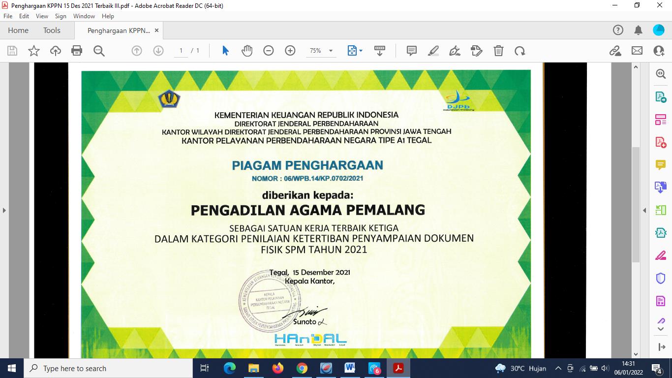 Selama Tahun 2021 Pengadilan Agama Pemalang berhasil meraih 7 penghargaan, yaitu :