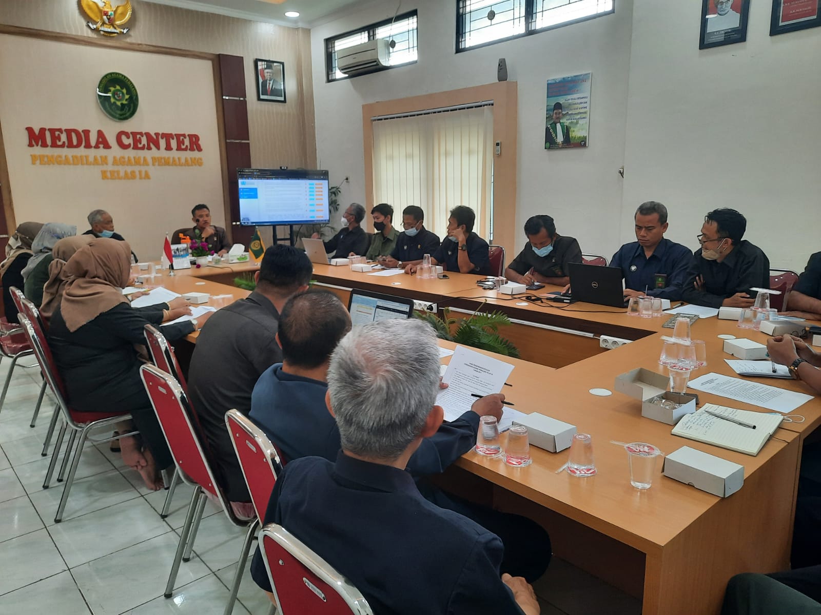 Pemalang, 09 Februari 2022. Hari ini Pengadilan Agama Pemalang melaksanakan rapat dinas bulanan yang dilaksanakan di Ruang Media Center pukul 13.30 WIB. Rapat ini dihadiri oleh Ketua Pengadilan Agama Pemalang, seluruh Hakim, ASN dan Tenaga Kontrak Pengadilan Agama Pemalang. Dalam rapat yang dipimpin oleh Ketua Pengadilan Agama Pemalang Drs. H. Asrori, S.H., M.H. ini membahas beberapa hal diantaranya pembahasan tentang penyelesaian temuan Bawas Mahkamah Agung RI, yang pada tanggal 24 s.d 28 Januari 2022 telah melaksanakan pengawasan terkait Kinerja dan Integritas pada Pengadilan Agama Pemalang Kelas 1A, pembahasan lainnya mengenai penyampaian kendala dari masing-masing bagian kepaniteraan dan kesekretariatan yang dihadapi selama melaksanakan tugas sebagai bahan evaluasi untuk kedepannya. (yas)