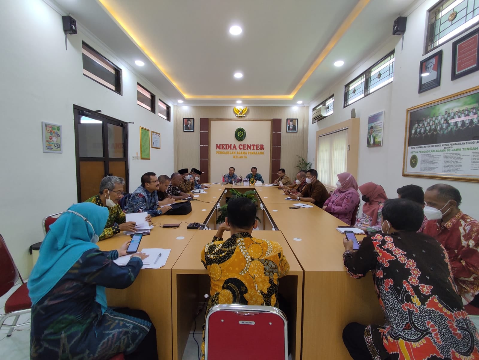 Pada hari Kamis 14/04/2022 Pengadilan Agama Pemalang menjadi tuan rumah dalam acara Rapat Koordinasi Koordinator Pengadilan Agama Wilayah Pekalongan. Adapun peserta dari rakor ini adalah para ketua, panitera, sekretaris Pengadilan Agama yang termasuk dalam koordinator wilayah Pekalongan yaitu Pengadilan Agama Pekalongan, Pengadilan Agama Slawi, Pengadilan Agama Brebes, Pengadilan Agama Pemalang, Pengadilan Agama Kajen, Pengadilan Agama Tegal, dan Pengadilan Agama Batang. Acara di mulai pukul 08.00 WIB bertempat di Media Center Pengadilan Agama Pemalang. (yas)