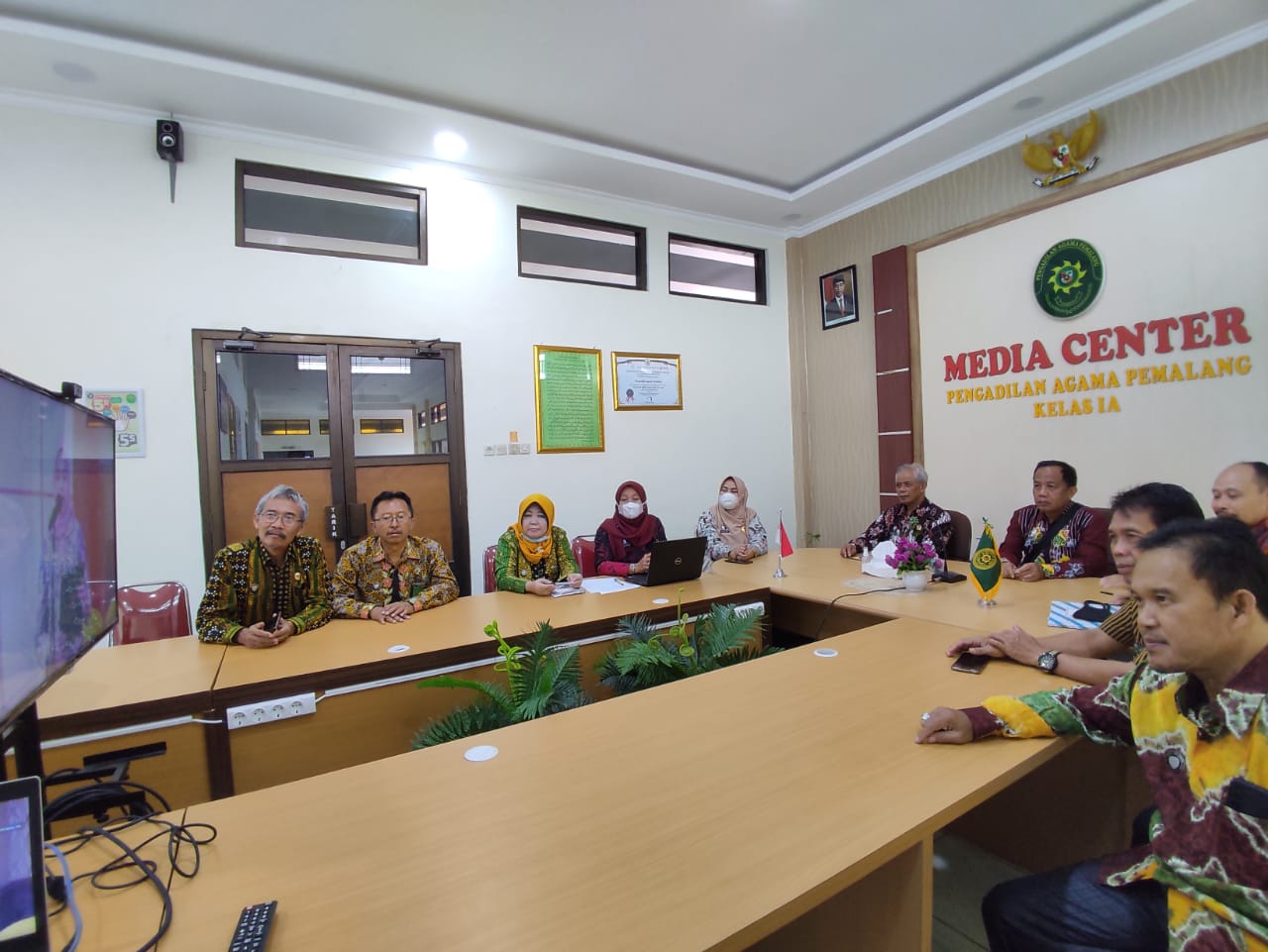Pemalang, 23 Juni 2022 - Bertempat di Ruang Media Center Pengadilan Agama Pemalang pukul 13:00 WIB. Ketua, Hakim, Sekretaris, dan Panitera Pengadilan Agama Pemalang menghadiri acara Pembinaan Teknis Dan Administrasi Yudisial Secara Virtual Pada Peradilan Tingkat Banding dan Peradilan Tingkat Pertama Di 4 Lingkungan Peradilan Seluruh Indonesia yang diselenggarakan oleh Pengadilan Tinggi Agama Semarang via Zoom Meeting.