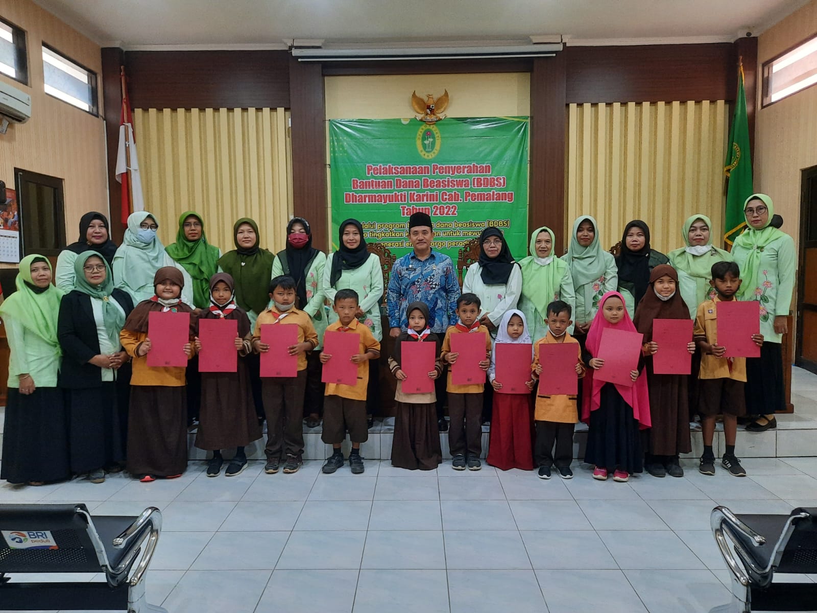 Penyerahan bantuan dana beasiswa (BDBS) ini diberikan oleh Bapak Drs. H. Asrori, S.H., M.H. Kegiatan Penyerahan Bantuan Dana Beasiswa (BDBS) ini merupakan salah satu program kerja dari Seksi Pendidikan Dharmayukti Karini Cabang Pemalang yang menjadi kegiatan rutin yang dilaksanakan oleh DYK Cab. Pemalang setiap tahunnya. Jumlah penerima beasiswa tahun ini diberikan kepada 12 orang pelajar yang semuanya masih pada jenjang pendidikan Sekolah Dasar (SD).