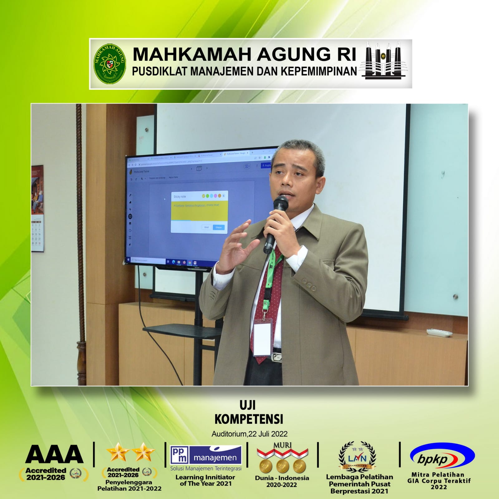 Pemalang, 28 Juli 2022 – Kasubag PTIP Pengadilan Agama Pemalang H. Ahmad Ali Syahbana, S.E., S.T., M.M. dinyatakan lulus dan kompeten dalam pendidikan dan latihan (Diklat) Sertifikasi Profesional Trainer dan ESQ 3.0 Coaching Tahun 2022 yang dilaksanakan oleh Pusat Pendidikan dan Latihan Manajemen Kepemimpinan (pusdiklatmenpim) Mahkamah Agung RI.