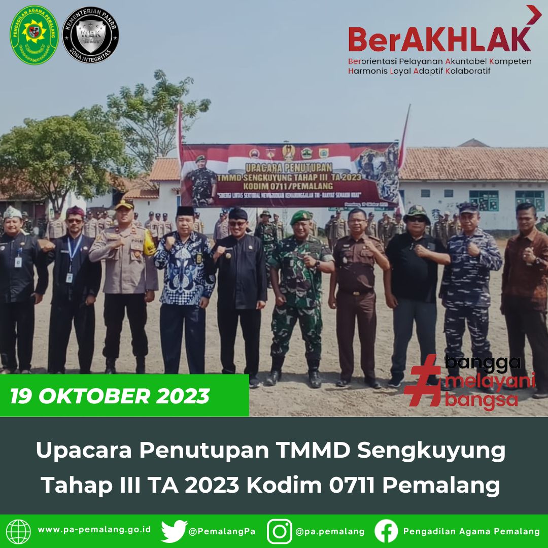 Ketua Pengadilan Agama Pemalang SOLAHUDDIN SIBAGABARIANG, S.Ag., M.H.menghadiri undangan kegiatan penutupan TNI Manunggal Membangun Desa (TMMD)tahap III TA 2023 Kodim 0711 pemalang di Desa Danasari.