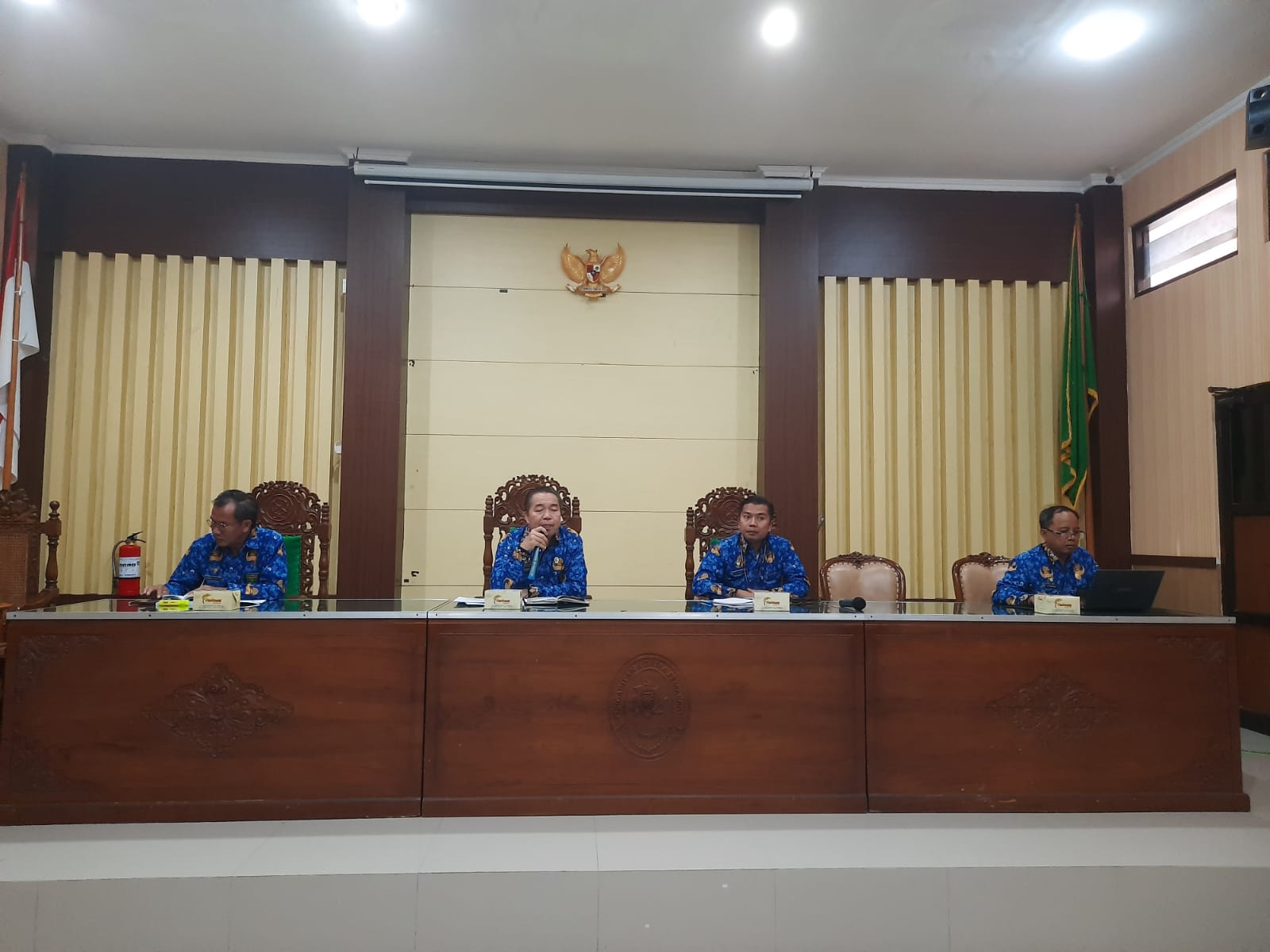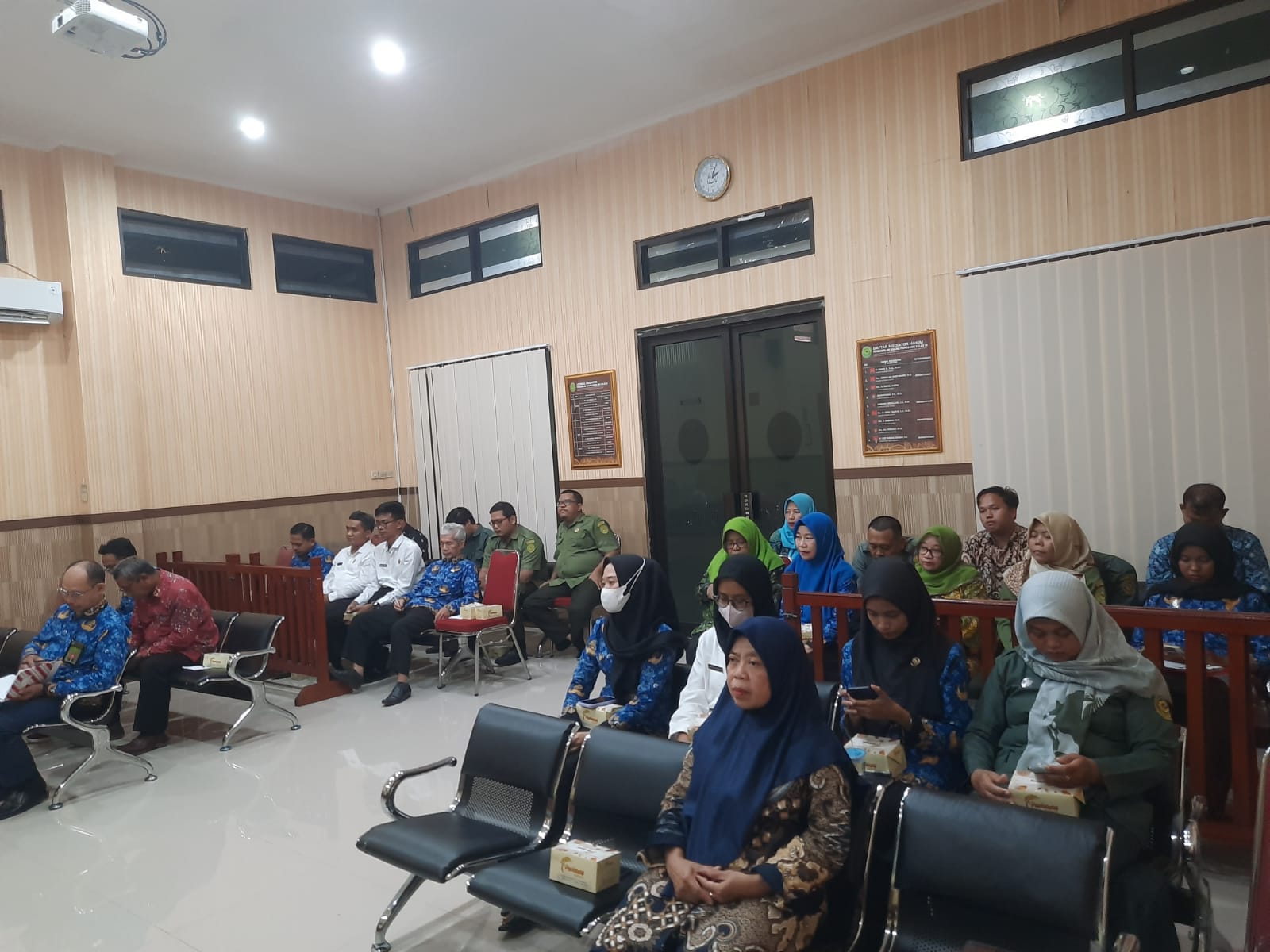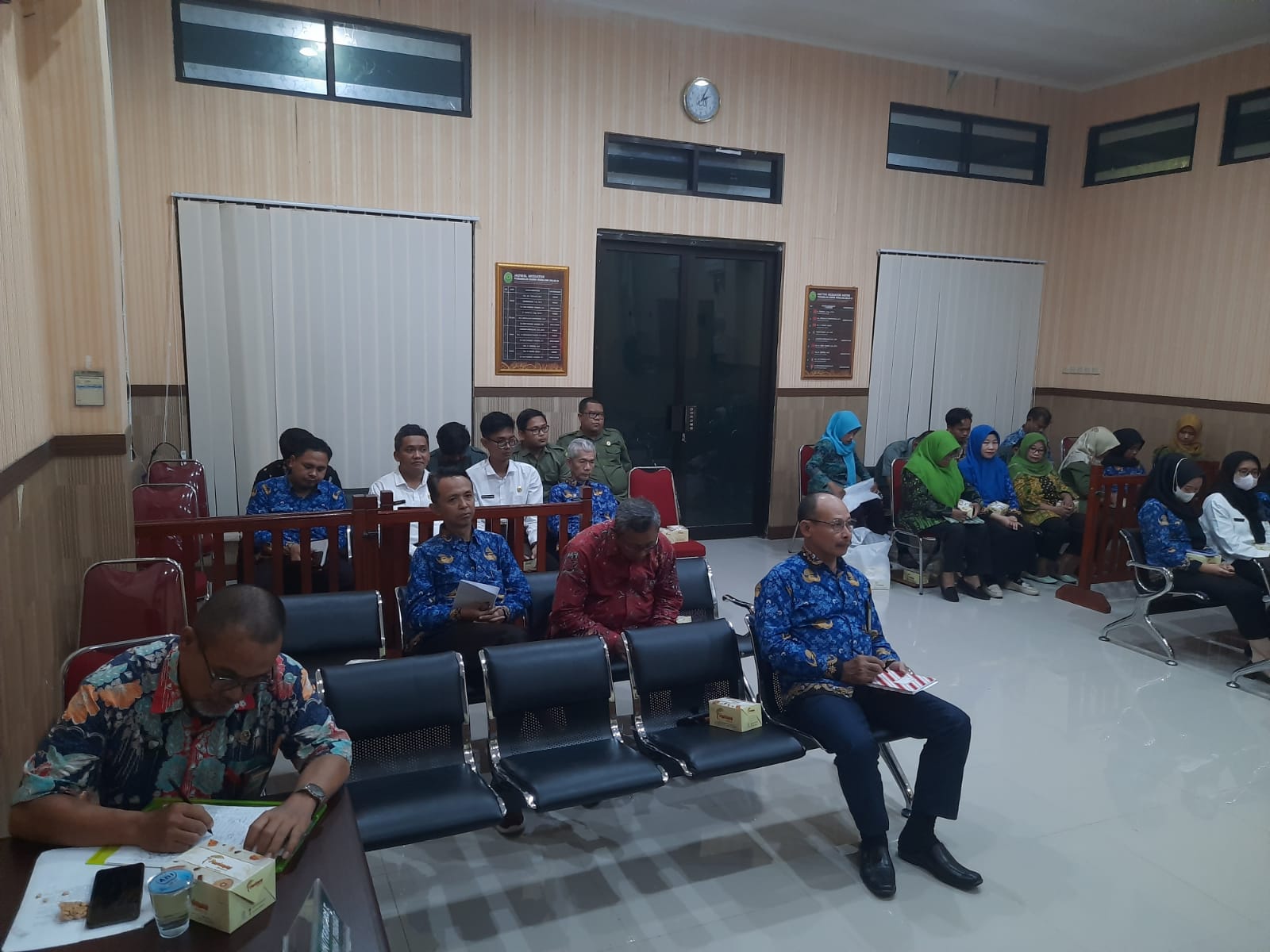 Bertempat di Ruang Sidang Utama Abu Bakar Ash Shidiq pukul 13.30 di adakan rapat dinas bulan Mei 2024 Aparatur Pengadilan Agama Pemalang.Dalam Rapat dinas Bulan ini Ketua Pengadilan Agama Pemalang Solahuddin Sibagabariang, S.Ag.,M.H melakukan evaluasi kinerja di triwulan Pertaman tahun 2024. Beliau Berpesan untuk meningkatkan apa yang belum maksimal di triwulan pertama ini sehingga nanti di triwulan II bisa mendapatkan nilai yang maksimal. Beliau juga berpesan untuk tetap melakukan penilaian mandiri untuk zona integritas WBK menuju WBBM. Dalam Kesempatan ini Beliau juga kembali melakukan refreshment terkait dengan E court, Gugatan Sederhana, Mediasi serta Eksekusi Putusan.