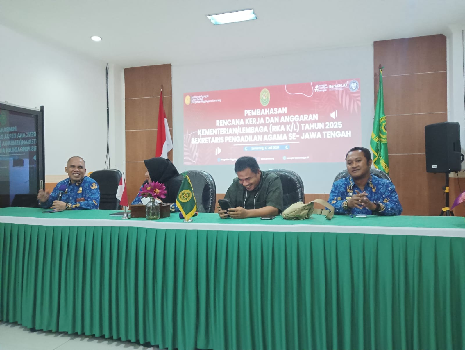 Berdasarkan Undangan dari PTA Semarang Nomor 367/WKPTA.W11-A/UND.HM3.1.3/VII/2024 tanggal 15 Juli 2024 Sekretaria Pegadilan Agama Pemalang Ali Choemaedi, S.H , menghadiri Acara Pembahasan Rencana Kerja dan Anggaran Kementrian/ Lembaga (RKA K/L) Tahun 2025 di Pengadilan Agama Semarang. Hadir Dalam Acara Tersebut Seluruh Sekretaris Pengadilan Agama Se Jawa Tengah. Dalam Pembahasan Tersebut ada beberapa hal yang di diskusikan di antaranya tentang DigitalTop Digital Awards yang akan dilaksanakan beberapa bulan kedepan, di lanjut dengan pembahasan RKA KL/ ABT, dan diskusi mengenai BMN.