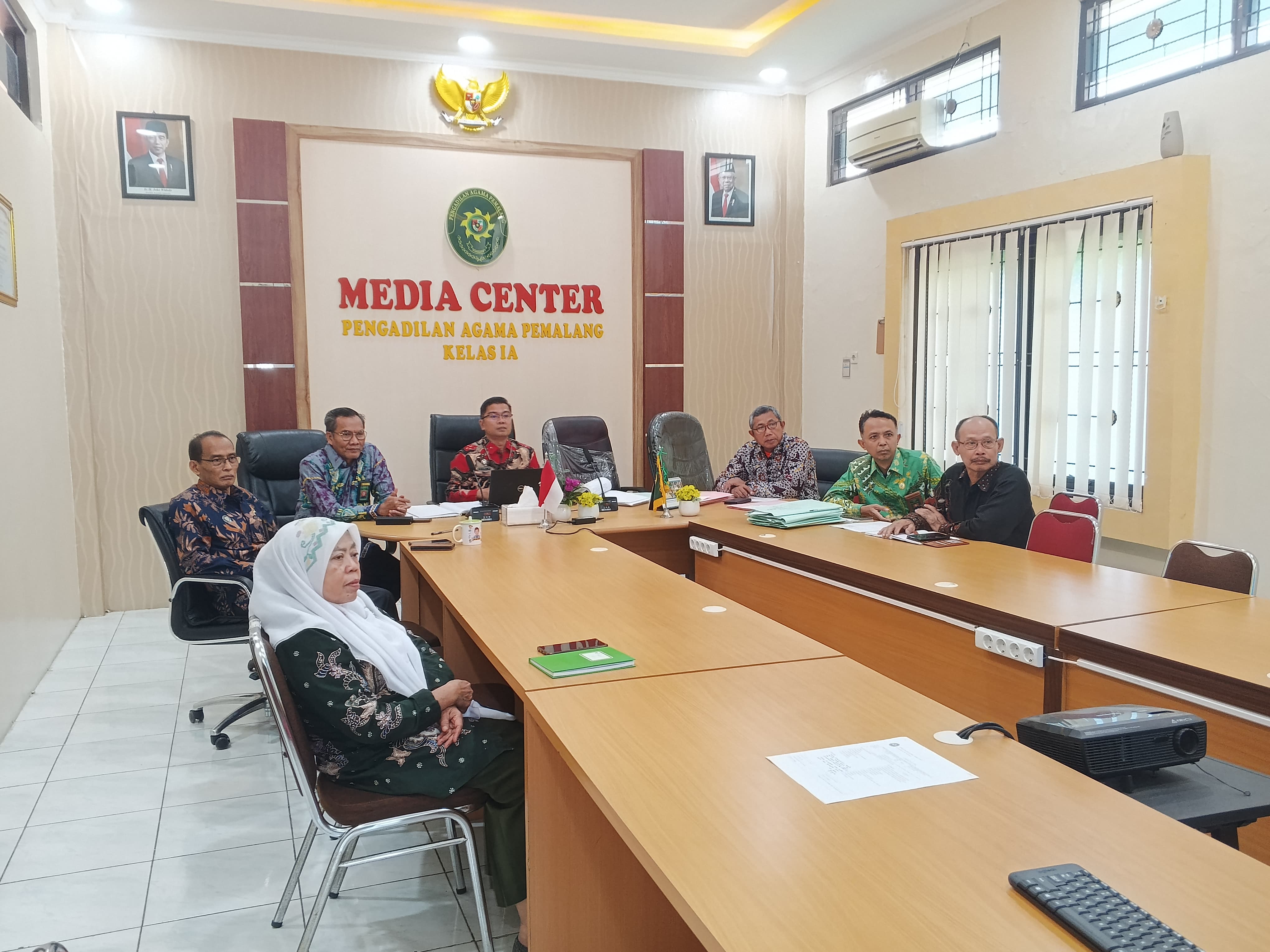 Bertempat di Media Center Pengadilan Agama Pemalang, Wakil Ketua, Panitera, Hakim Pengadilan Agama Pemalang menghadiri Undangan Bimtek Peningkatan Kompetensi Tenaga Teknis di Lingkungan Peradilan Agama Secara Daring Oleh Badilag dengan Tema "Titik Singgung Penyelesaian Sengketa Perbankan Syariah dengan Kewenangan Lembaga Penjamin Simpanan (LPS)" Sebagai Narasumber Yang Mulia Hakim Agung Kamar Agama Mahkamah Agung Republik Indonesia, Bapak Dr. H. Yasardin, S.H.,M.Hum.