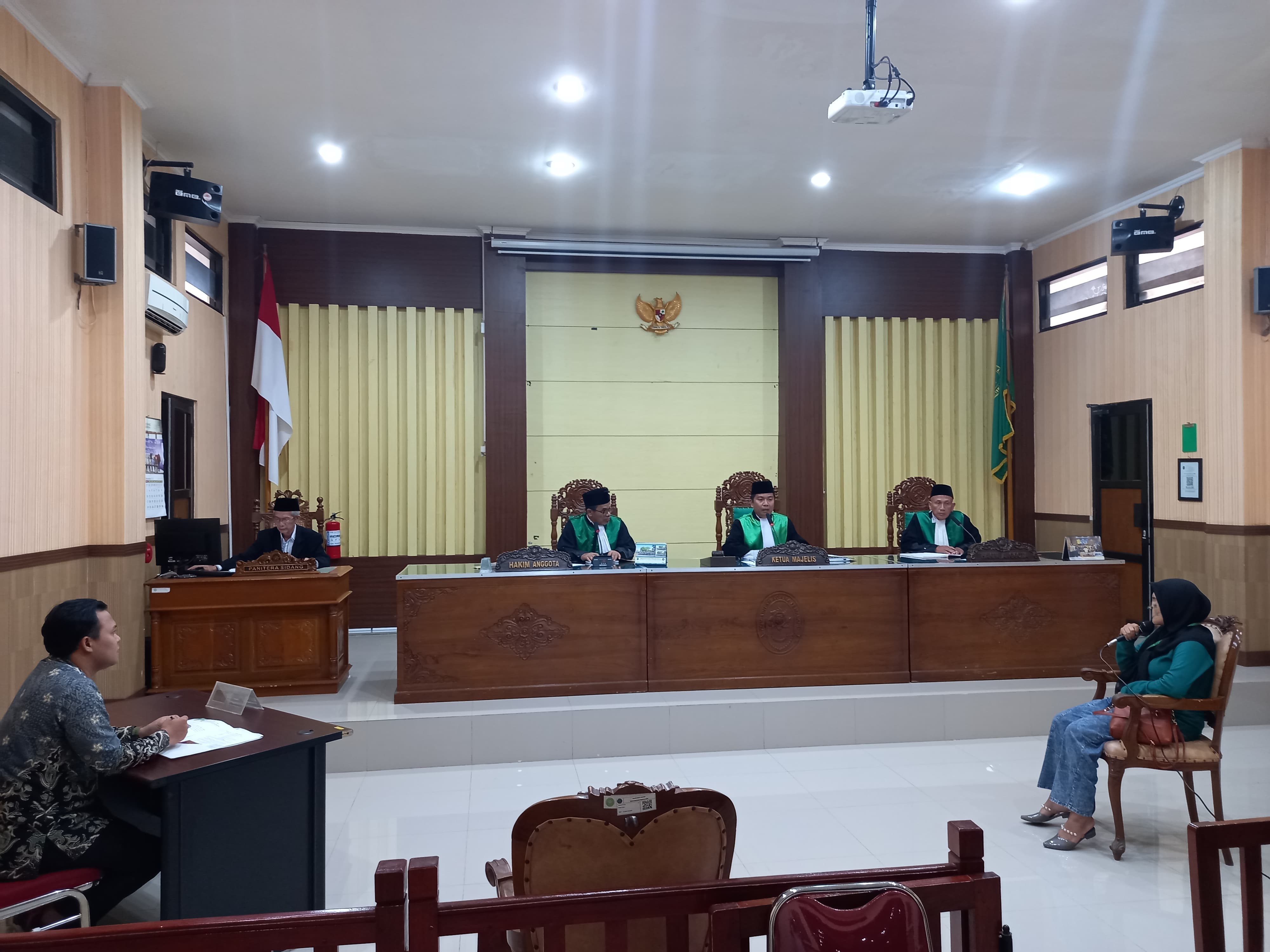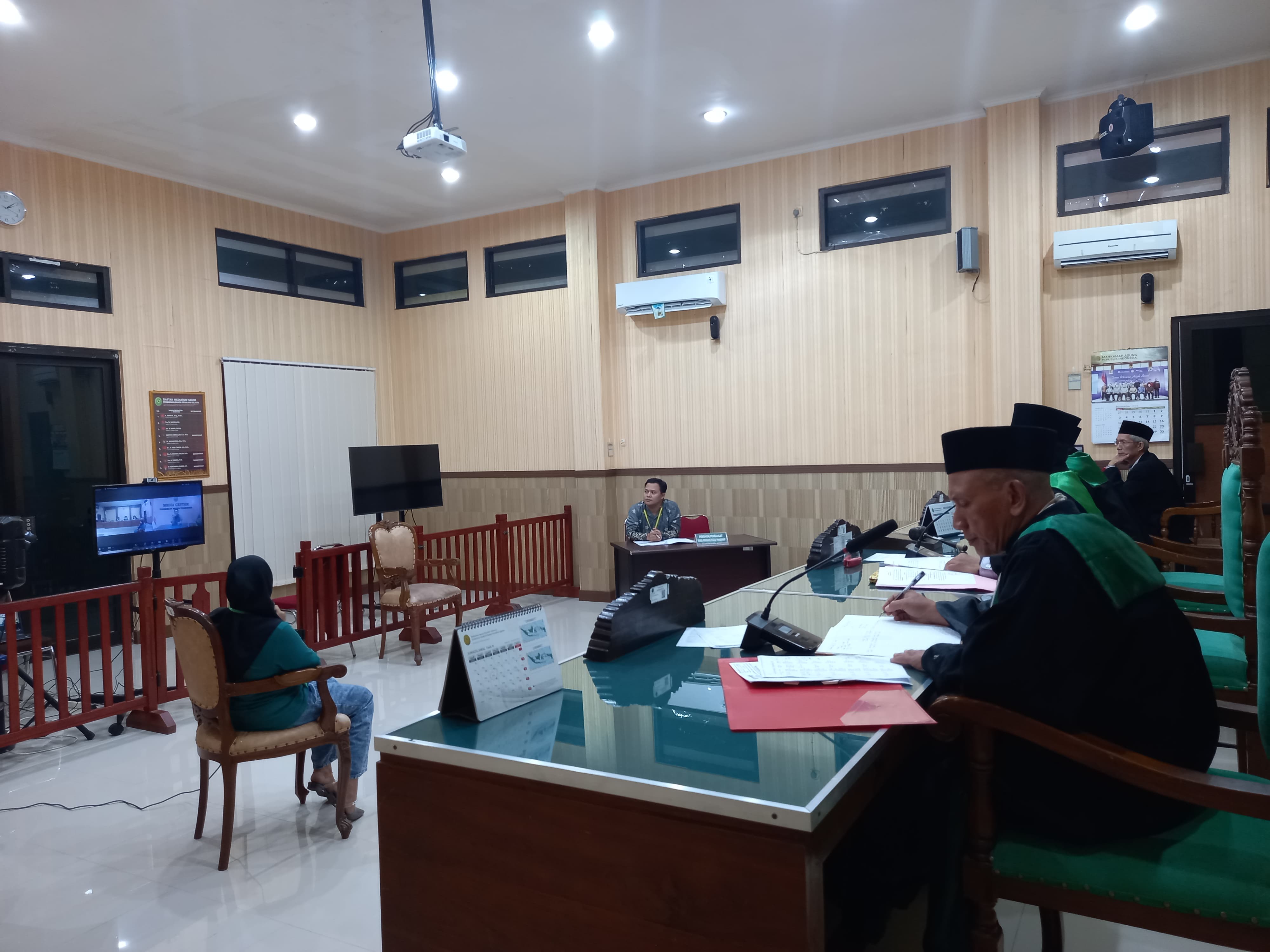 Sidang virtual dilaksanakan pukul 13.30 WIB di Ruang Sidang Utama Abu Bakar Ash Shiddiq. Sidang berjalan dengan lancar tanpa adanya gangguan baik gangguan audio maupun visual di pimpin oleh Ketua Majelis H. Fahmi R, S.Ag.,M.H.I, Hakim Anggota Drs. Muhd. jazuli, & Drs. Syamsul Falah, M.H serta Panitera Sidang Asngadi, S.H.