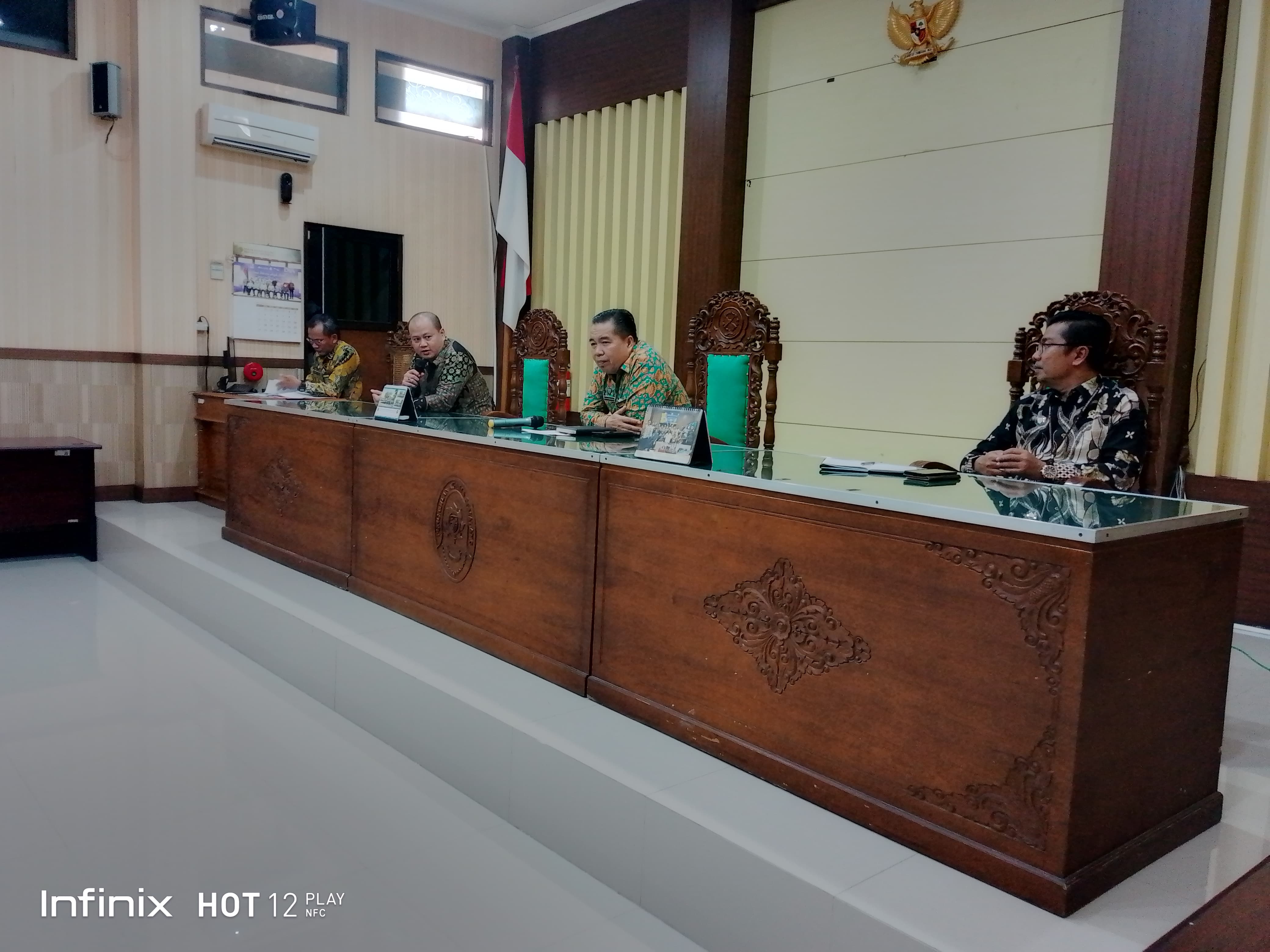 Pada hari Jumat Pukul 13.30 WIB, bertempat di ruang sidang utama Abu Bakar Ash Shidiq, berlangsung kegiatan monitoring dan evaluasi mengenai panggilan atau pemberitahuan pengiriman surat tercatat bersama dengan PT.POS Indonesia (Persero) Cabang Pemalang. Kegiatan ini di hadiri oleh Ketua Pengadilan Agama Pemalang, Wakil Ketua, Para Hakim, Panitera, Para Panmud, Para Panitera Pengganti, Para Jurusita & Jurusita Pengganti dan staf pelaksana pada Pengadilan Agama Pemalang dan dari PT. POS (Persero) hadir Executive Manager bapak Gemi Ashadi Suratman beserta Staff. monitoring dan evaluasi ini membahas tinjauan terhadap efektivitas sistem pengiriman surat tercatat, ketersediaan layanan, serta kualitas penerimaan surat tercatat oleh pihak yang dituju. Hasil dari evaluasi ini akan menjadi dasar bagi kedua belah pihak untuk melakukan perbaikan dan peningkatan jika diperlukan.