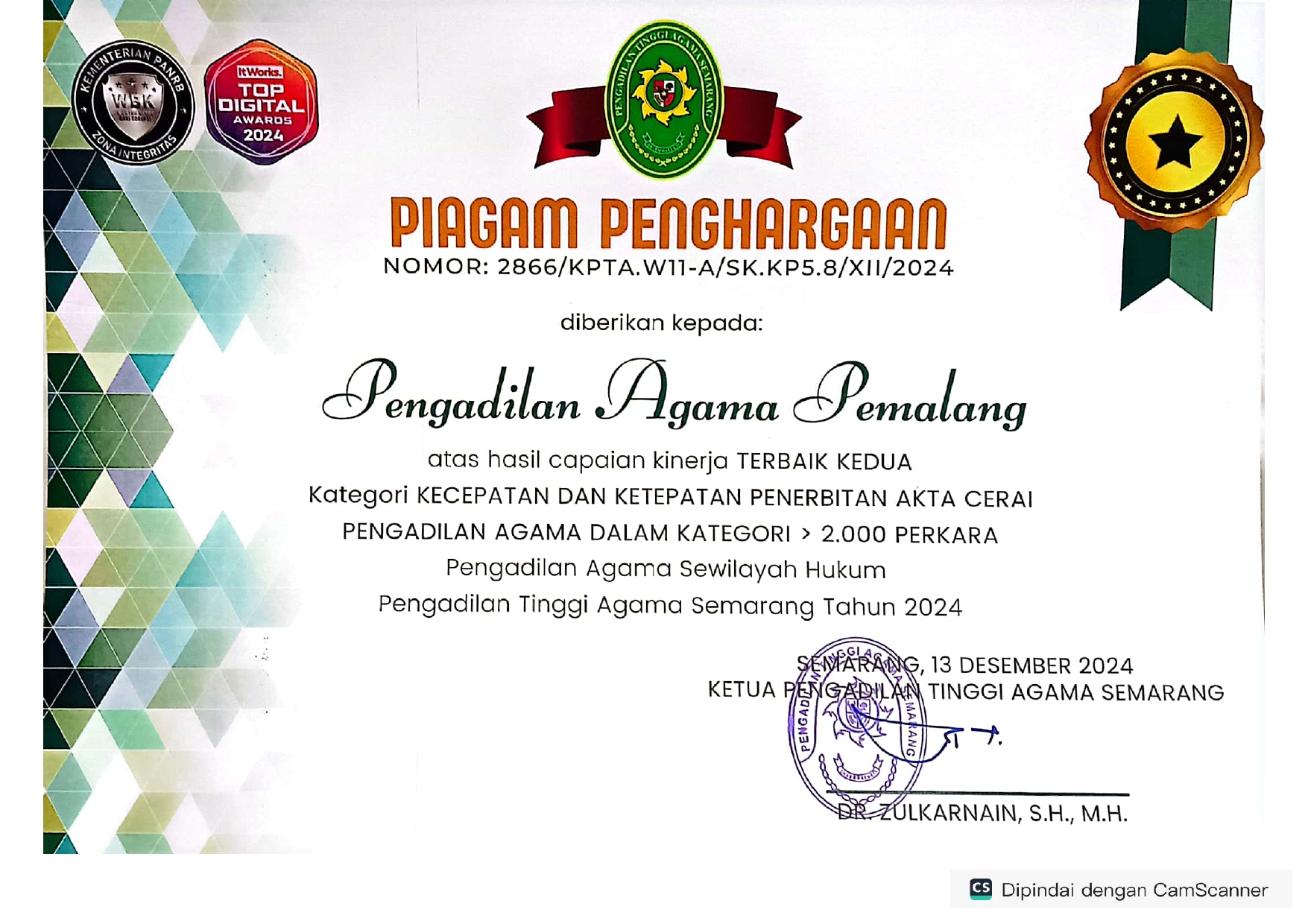 3. Terbaik Ke 2 Kecepatan an Ketepatan Akta Cerai Kategori >2000 Perkara