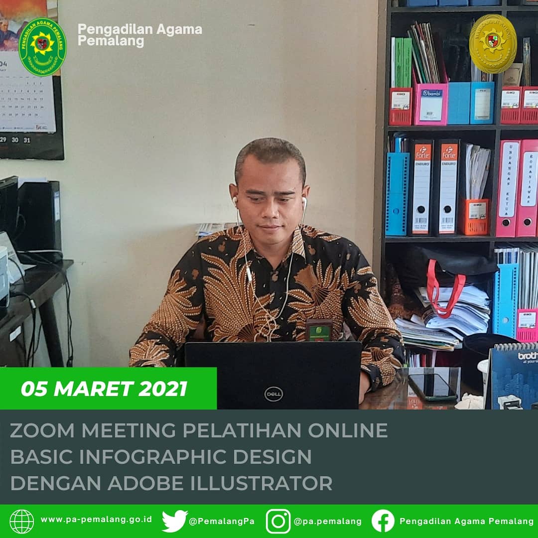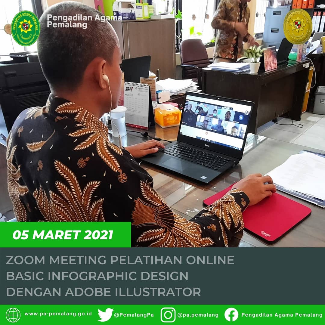 Pemalang, 05 Maret 2021. Kepala Sub Bagian Perencanaan Teknologi Informasi dan Pelaporan Pengadilan Agama Pemalang, Bapak H. Ahmad Ali Syahbana, S.E, S.T, M.M. mengikuti Pelatihan Online Basic Infographic Design dengan Adobe Illustrator dari tempat tugas 2021 pada Pusdiklat Manajemen dan Kepemimpinan Badan Litbang Diklat Kumdil Mahkamah Agung RI yang bekerjasama dengan International Design School (IDS). Pelatihan Online Basic Infographic Design dengan Adobe Illustrator Kelas 06 sd 09 dari tempat tugas diselenggarakan dari tanggal 1 Maret sampai dengan 5 Maret 2021. Total peserta yang mengikuti pelatihan ini adalah 135 peserta yang telah dipilih dan tersebar di seluruh pengadilan di Indonesia. (YulitaIntan)