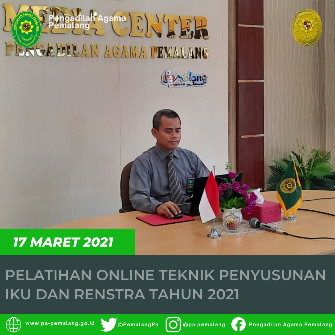 Pemalang, 17 Maret 2021. Pengadilan Agama Pemalang yang diwakilkan oleh Kepala Sub Bagian Perencanaan Teknologi Informasi dan Pelaporan, Bapak H. Ahmad Ali Syahbana, S.E, S.T, M.M. mengikuti Pelatihan Online Teknik Penyusunan IKU (Indikator Kinerja Utama) dan RENSTRA (Rencana Strategis) dari tempat tugas pada Pusdiklat Manajemen dan Kepemimpinan Badan Litbang Diklat Kumdil Mahkamah Agung RI yang bekerjasama dengan Pusat Pengembangan Akuntansi Fakultas Ekonomi dan Bisnis Universitas Indonesia Tahun Anggaran 2021. Pelatihan ini dilaksanakan dari tanggal 15 Maret 2021 s.d 19 Maret 2021 yang yang diikuti oleh 131 peserta yang dibagi menjadi tiga kelas. Seluruh peserta merupakan kepala sub bagian terpilih yang tersebar di seluruh pengadilan di Indonesia. (YulitaIntan)